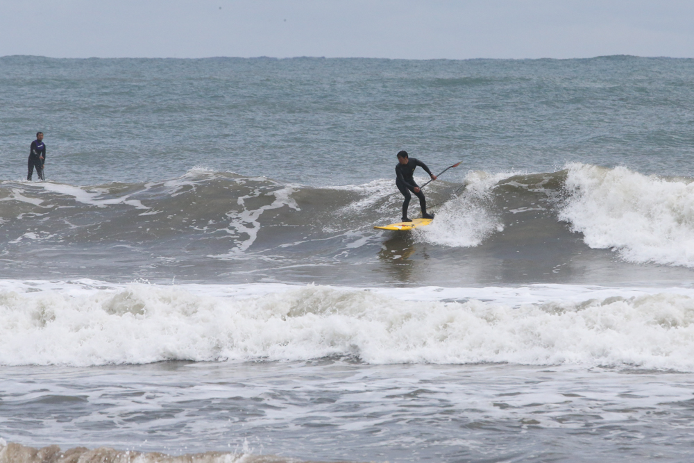 ちょっと厚めでブレイクすると早い波でしたが早めにうねりに引っかかるロングボードタイプのSUPボードのメリットを最大限に活かしてのライディング。