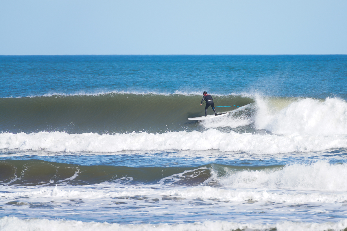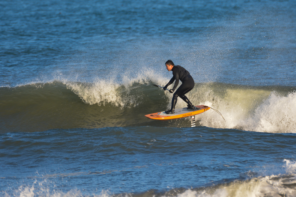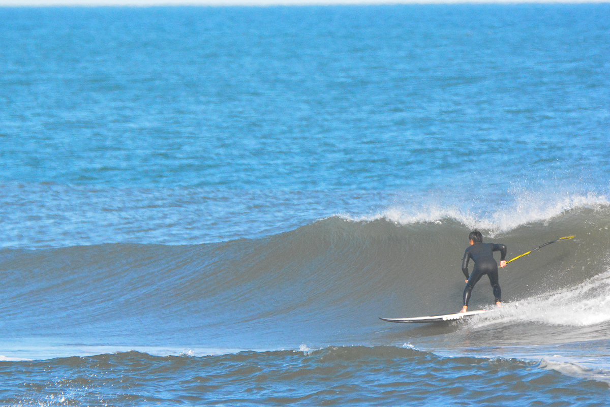 最初の数本のバックハンドでのライディング、波のポケットでのホールド感、そしてトップでのテイルのぬきやすさなどハイパフォーマンスSUPボードの進化を十分感じさせる素晴らしい乗り味。