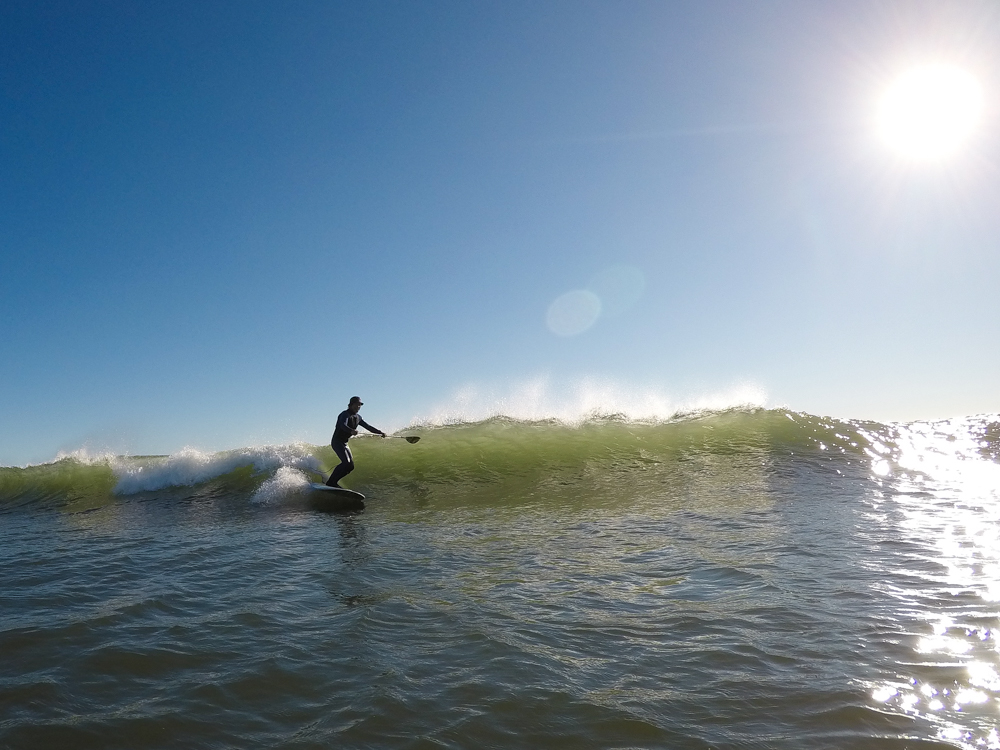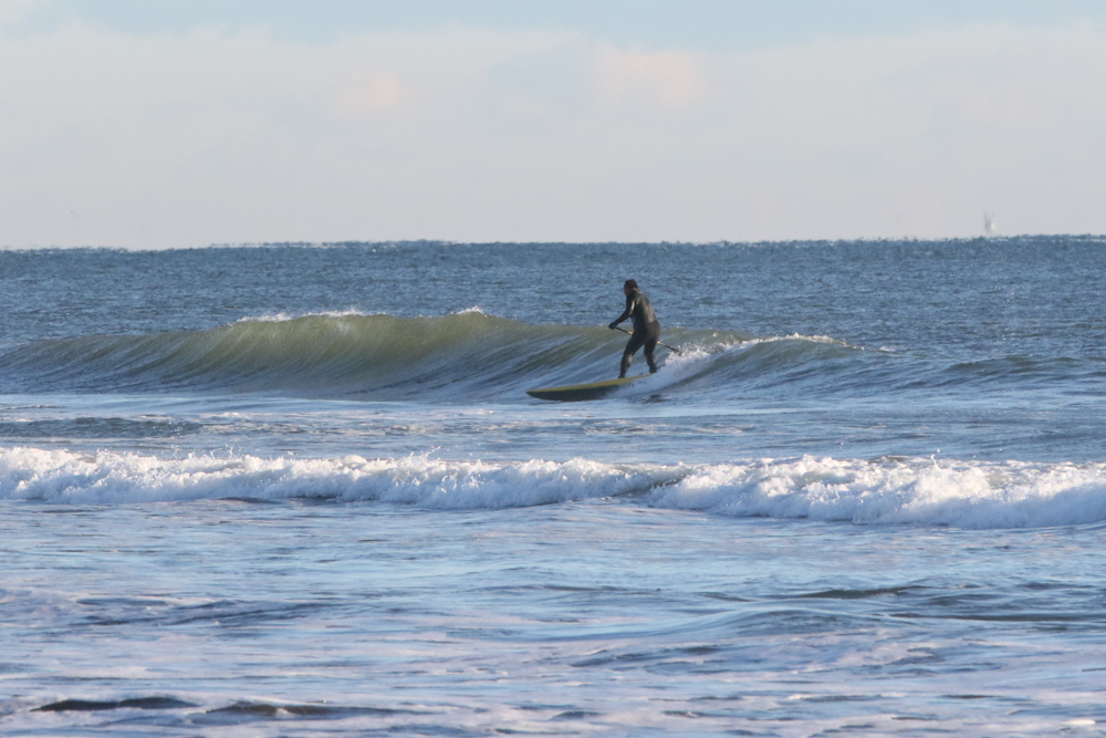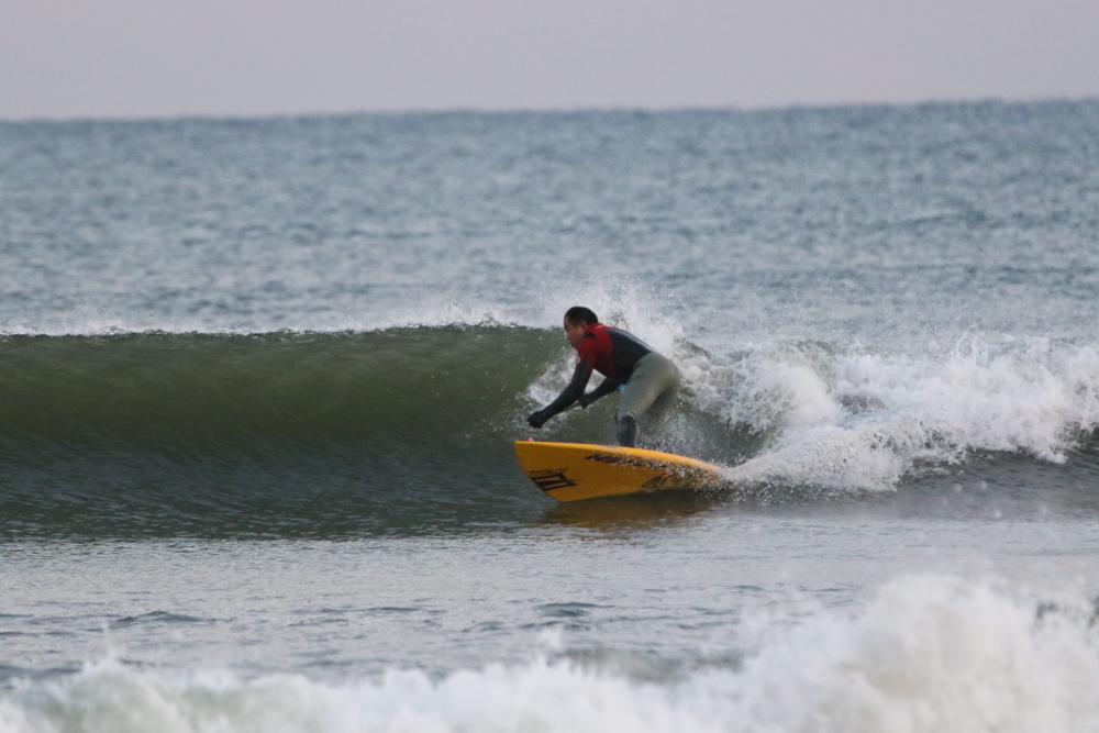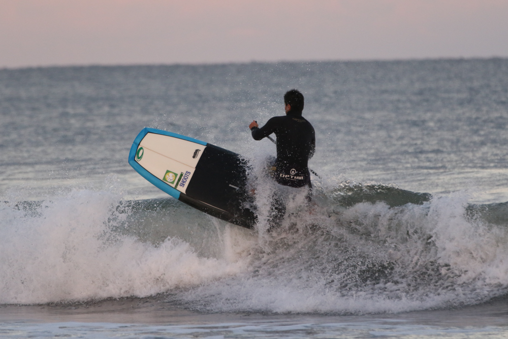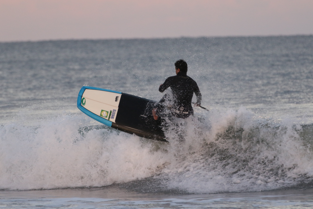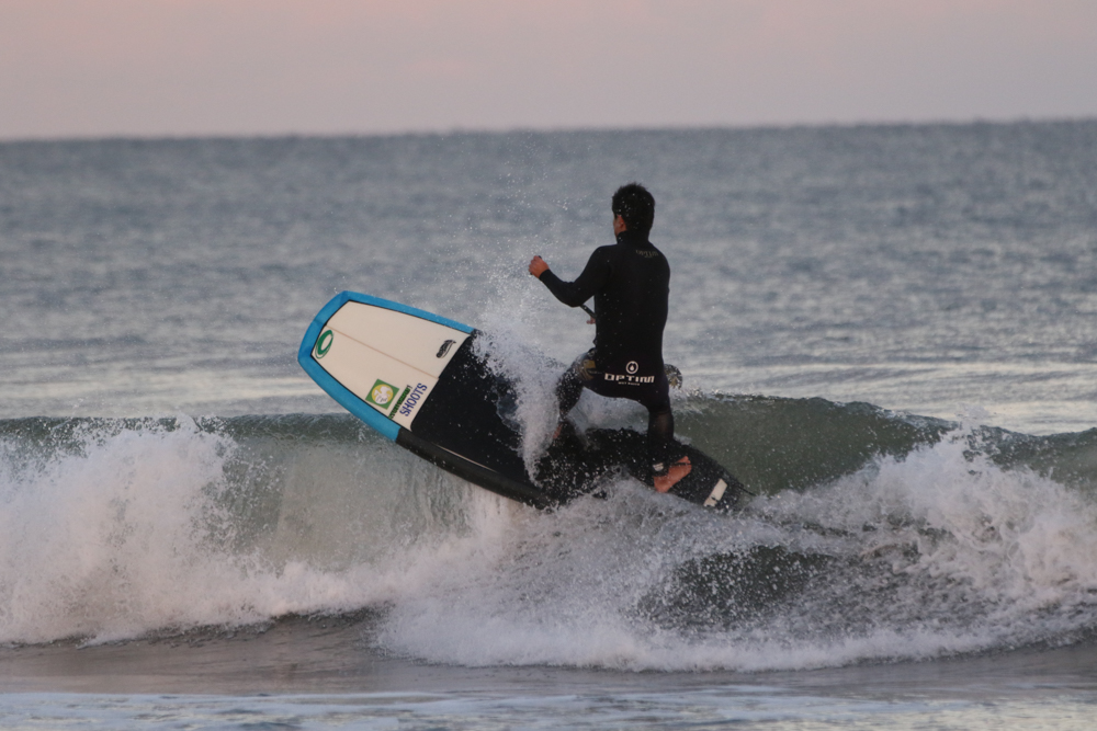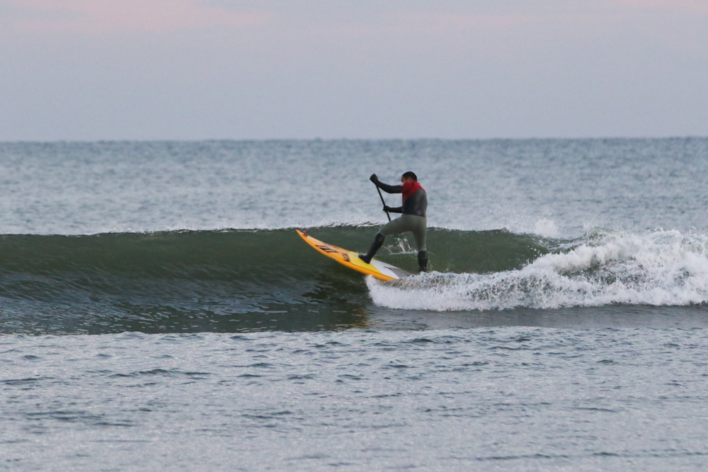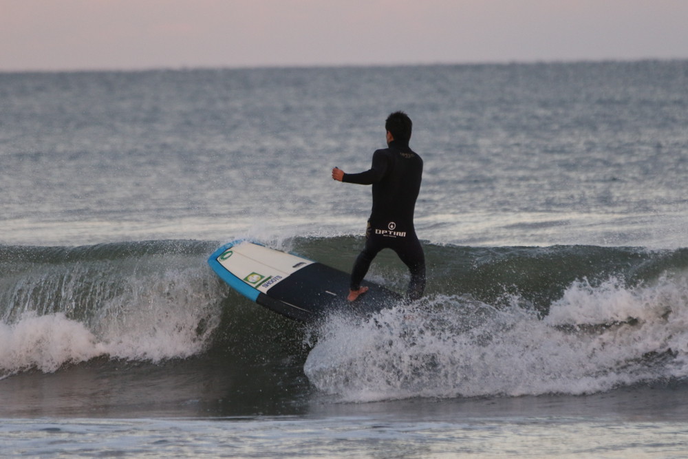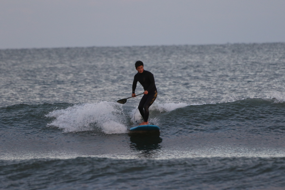 強めに吹いていた北西も弱まり日暮れまでの1時間メローなコンディションでのSUPサーフセッション。