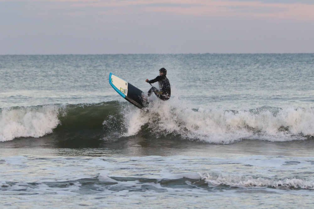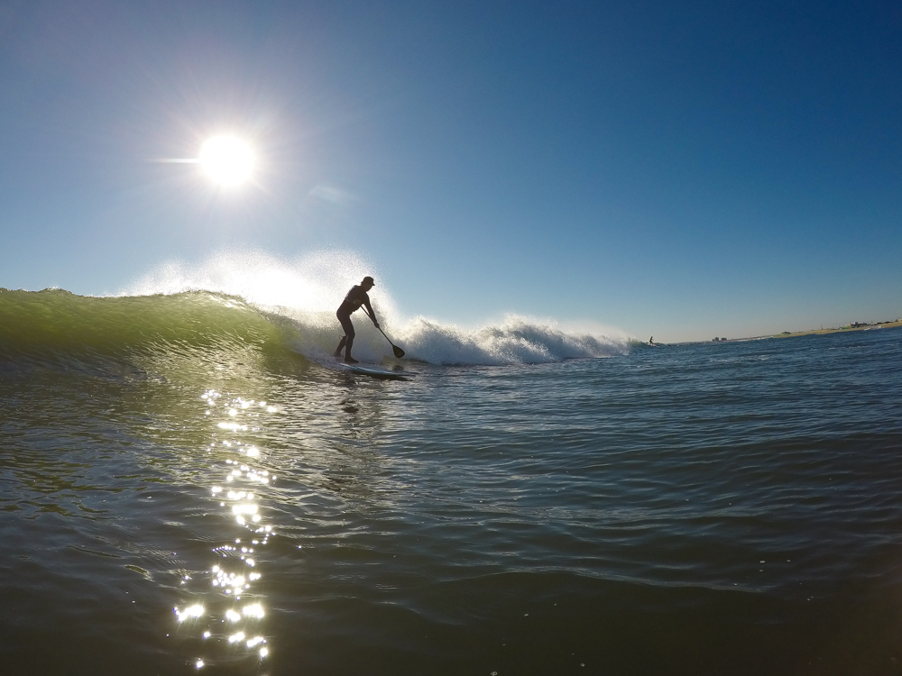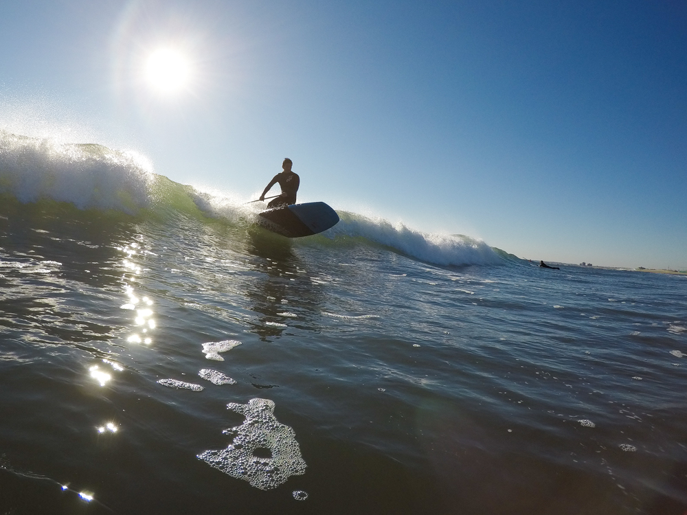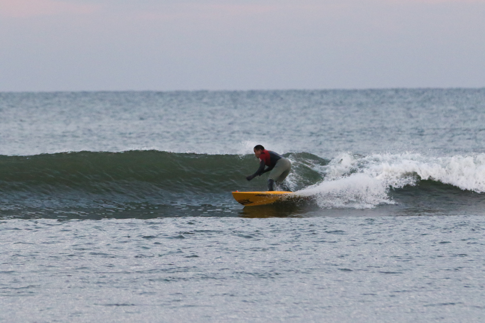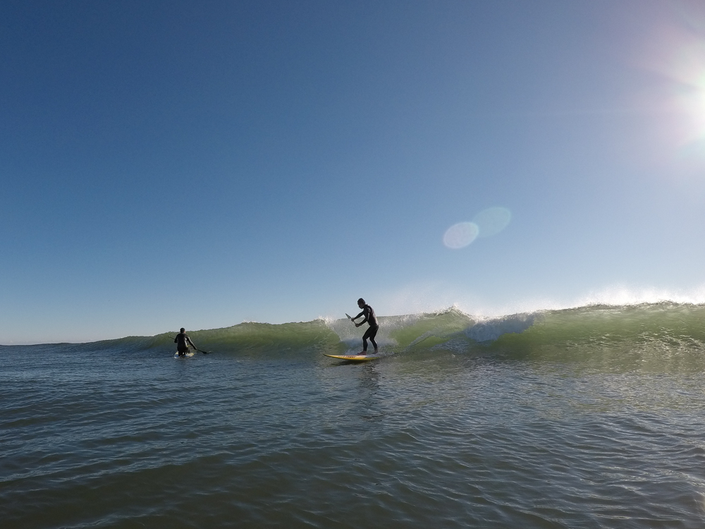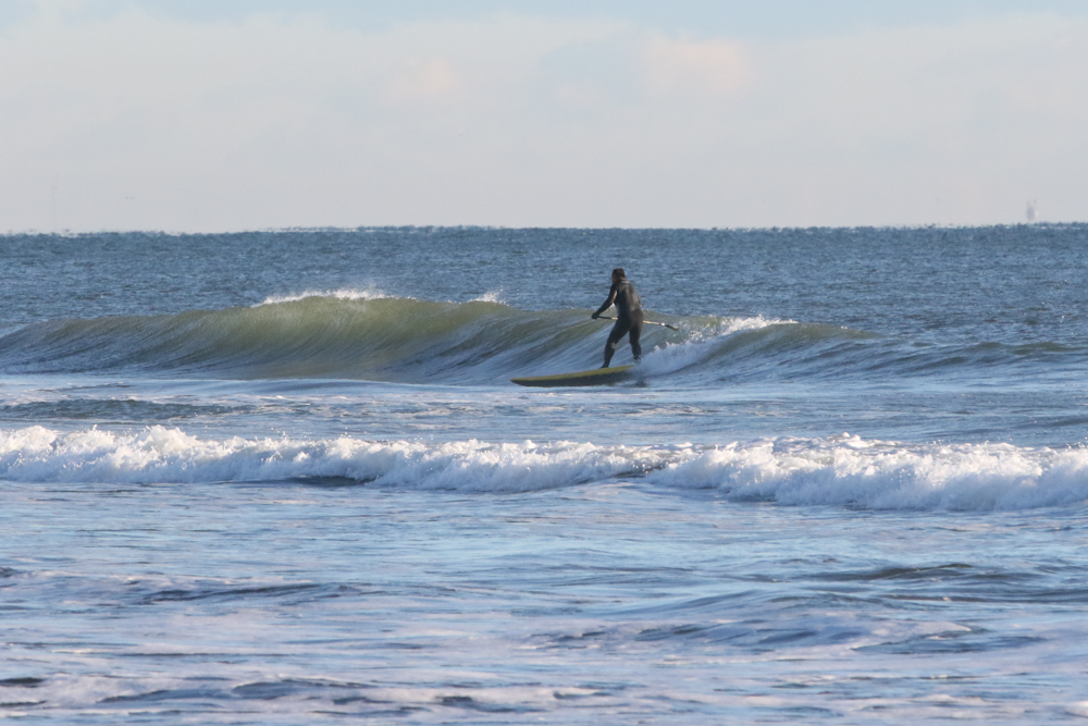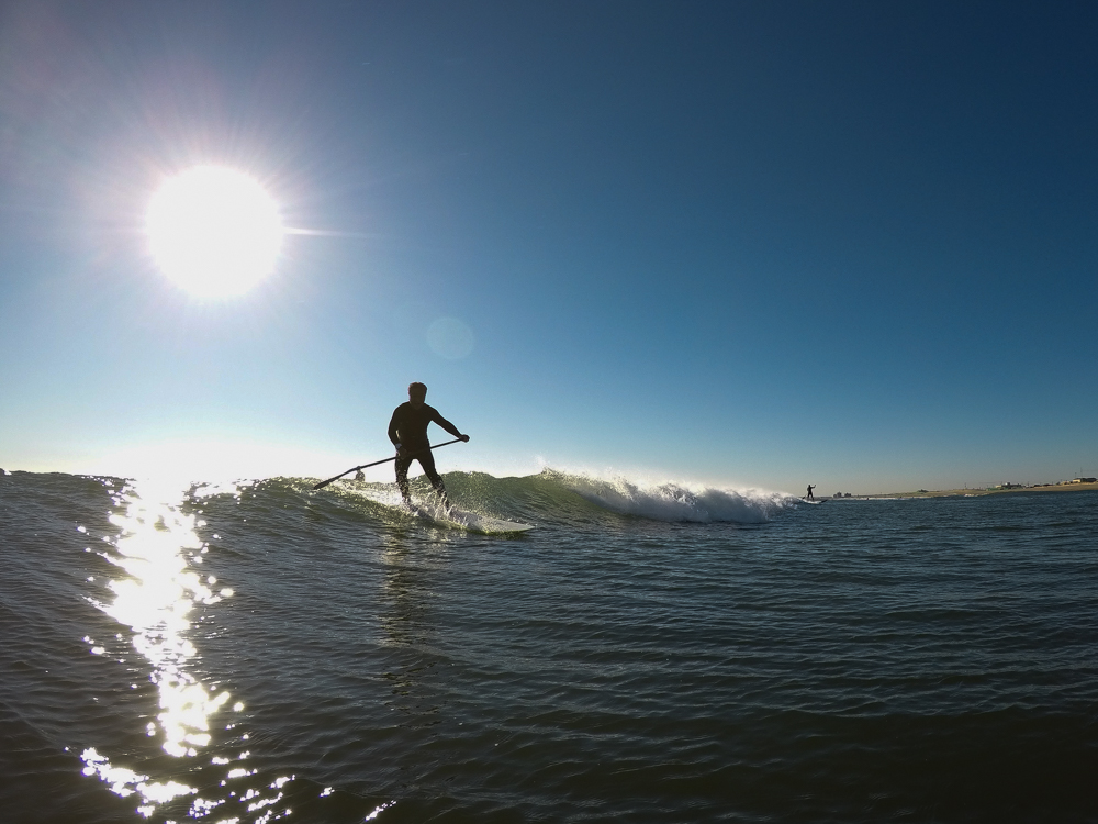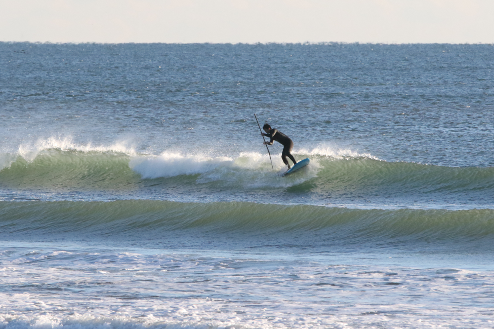 強めに吹いていた北西も弱まり日暮れまでの1時間メローなコンディションでのSUPサーフセッション。