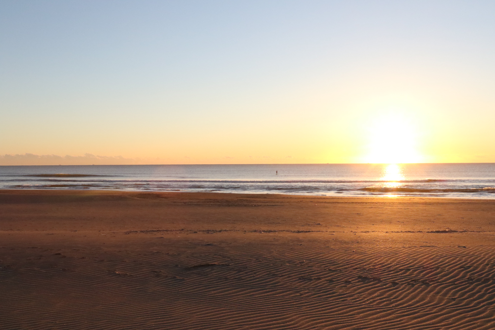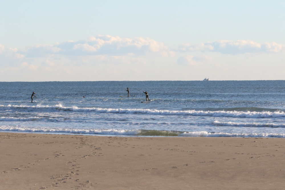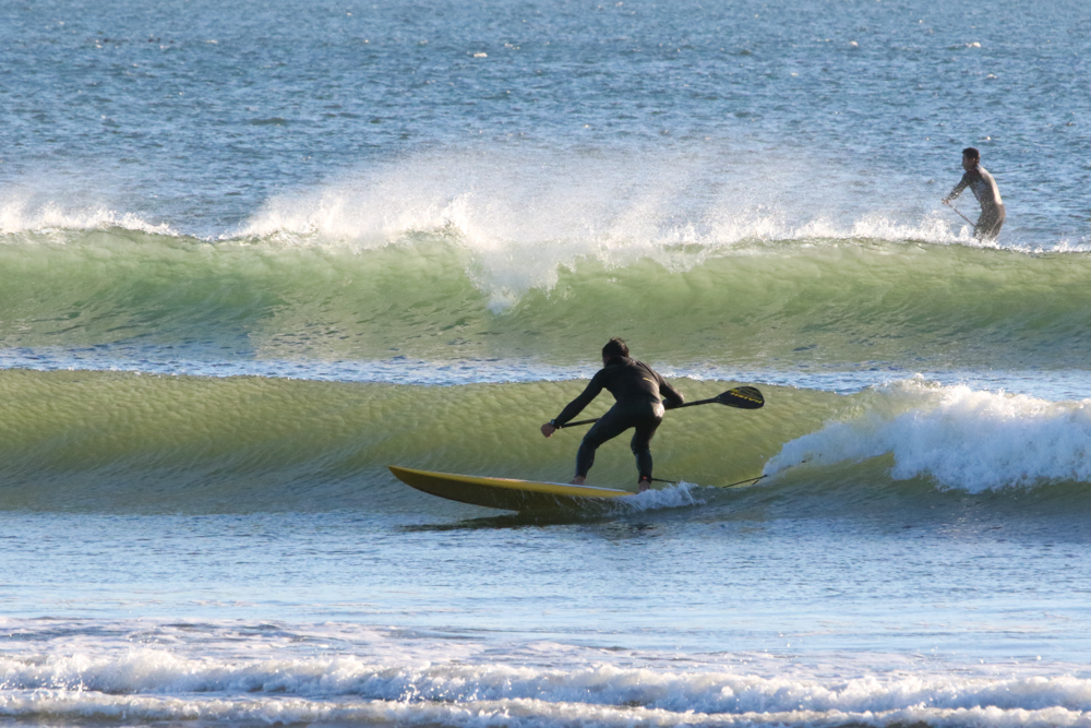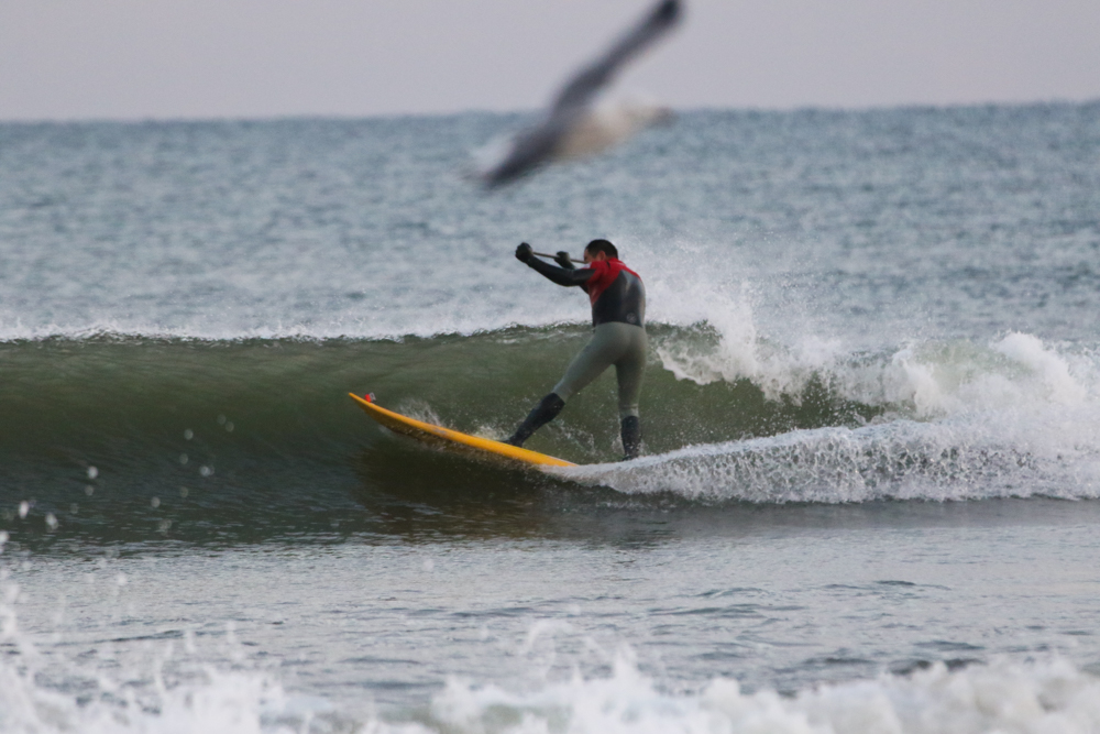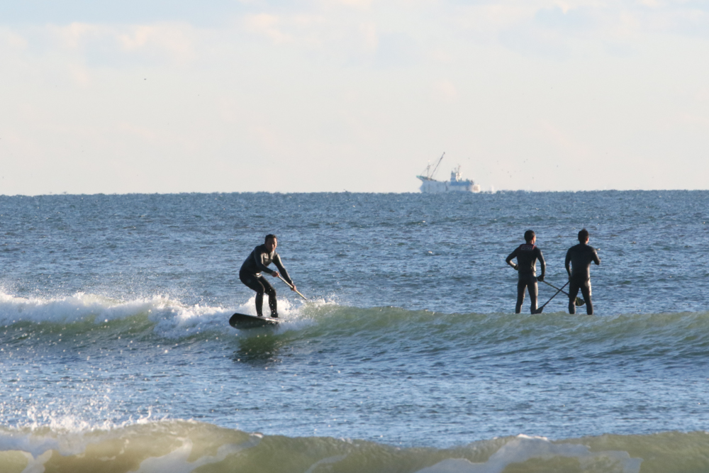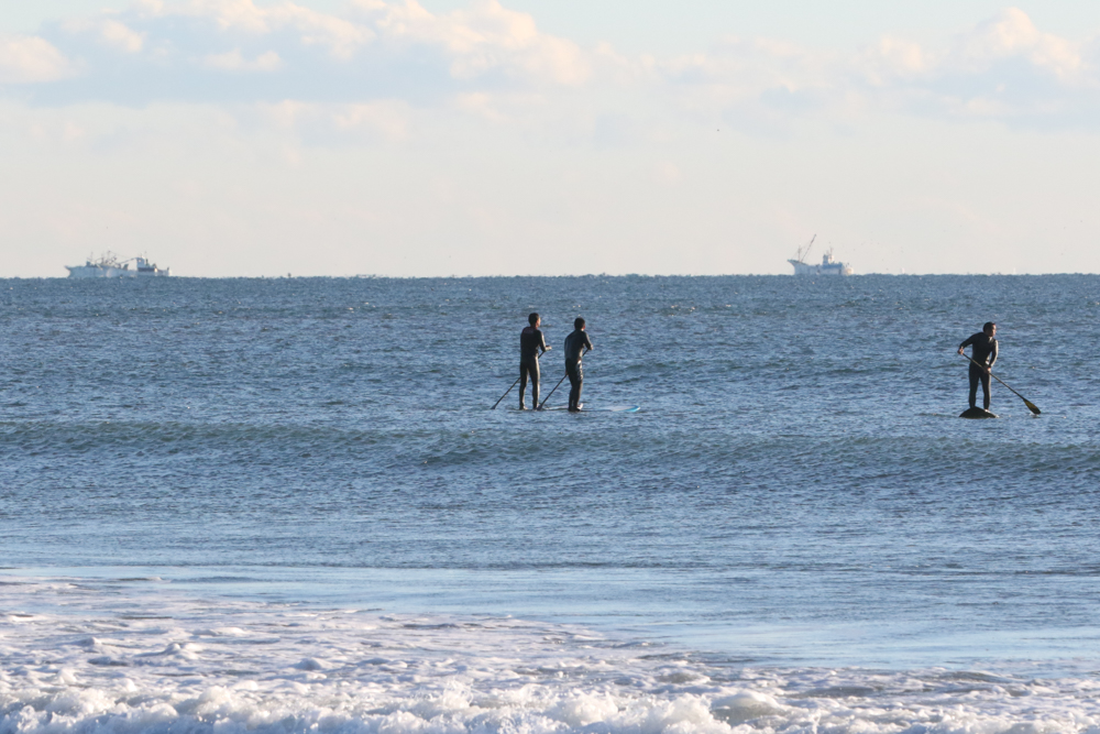 朝6時半にビーチに着くと既にアウトサイドにSUPサーファー。