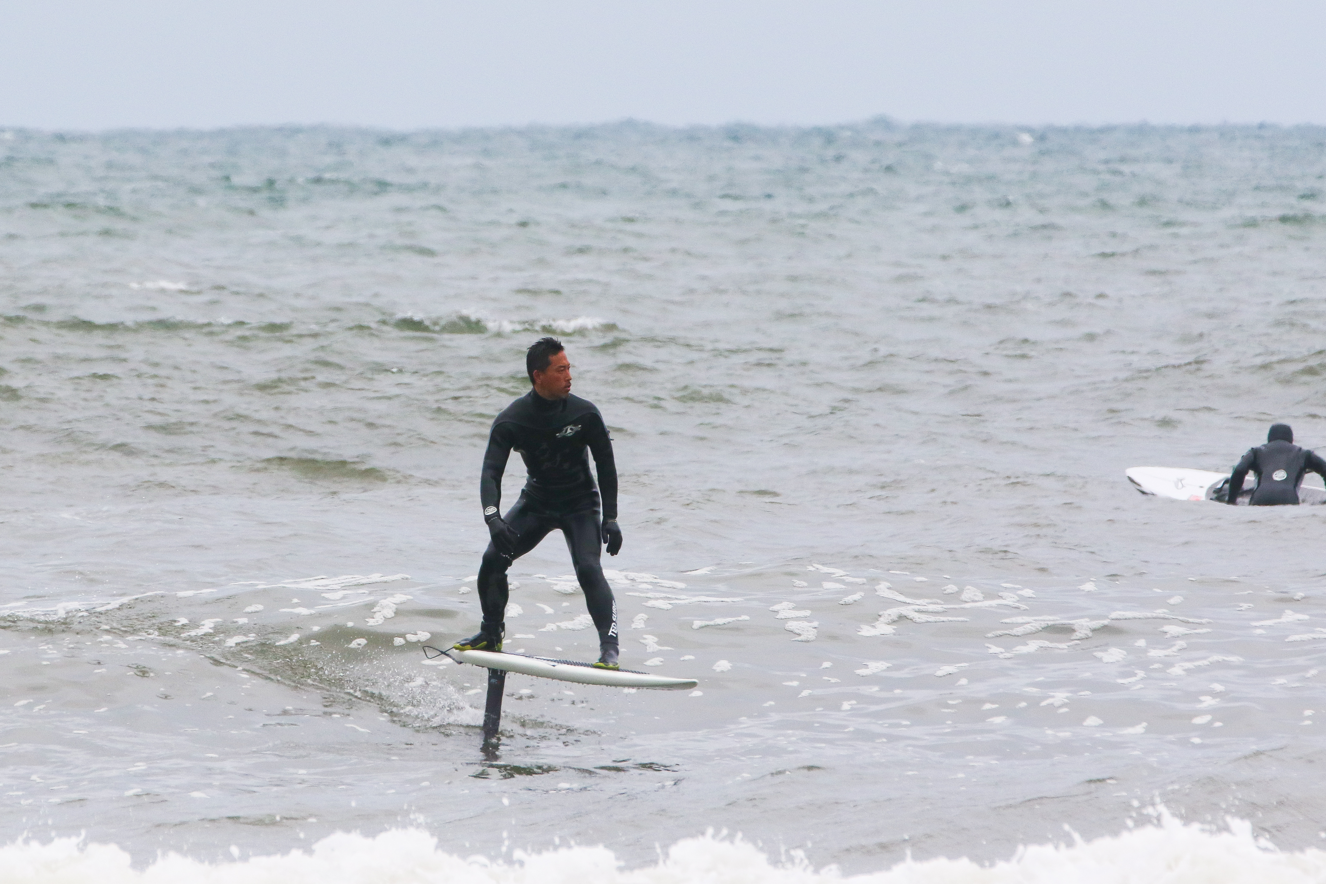 お昼過ぎになると朝一からライディングしていたメンバーさん+SUPフォイルでエントリーのツッキーさんも加わり寒さも関係なし?ブルブル震えながらみんな準備していました。