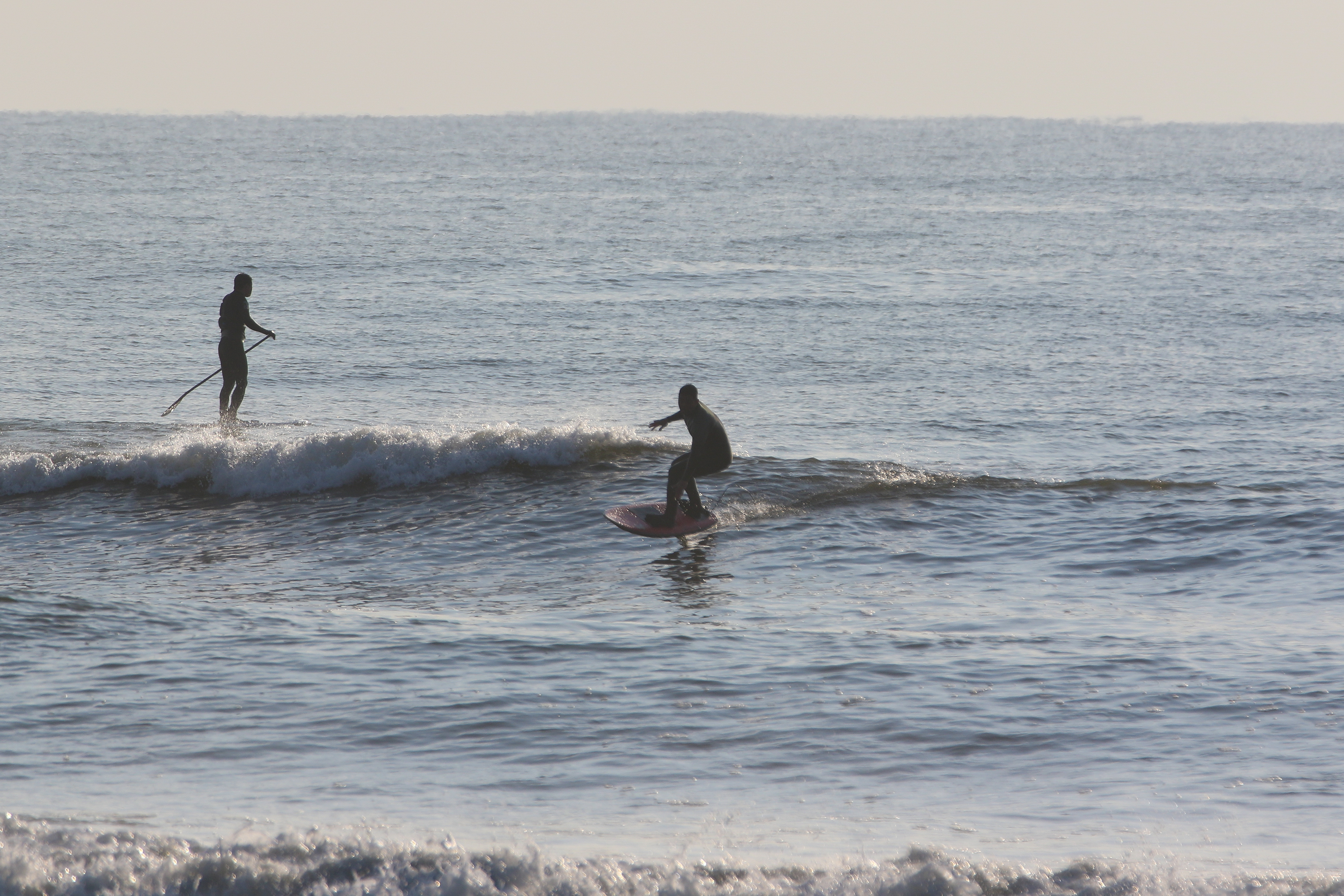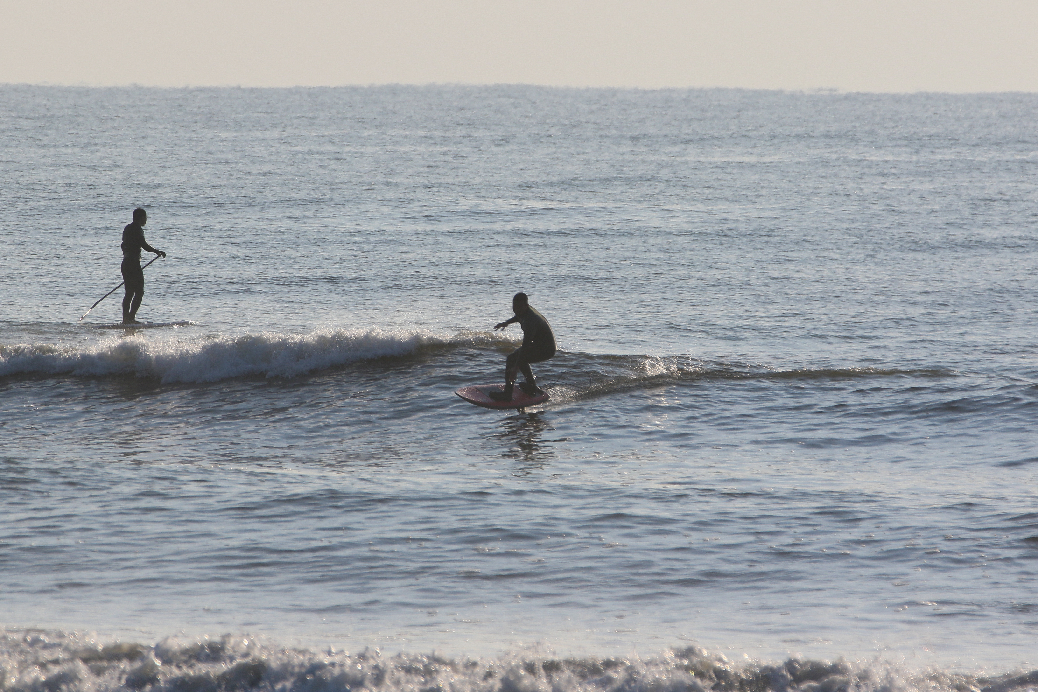 潮が引き始めると波がまたぱきっとし始めてSUPサーフでも楽しめるコンディション、一人いい波を楽しんでいたMikuchan.