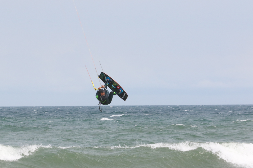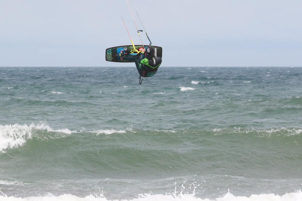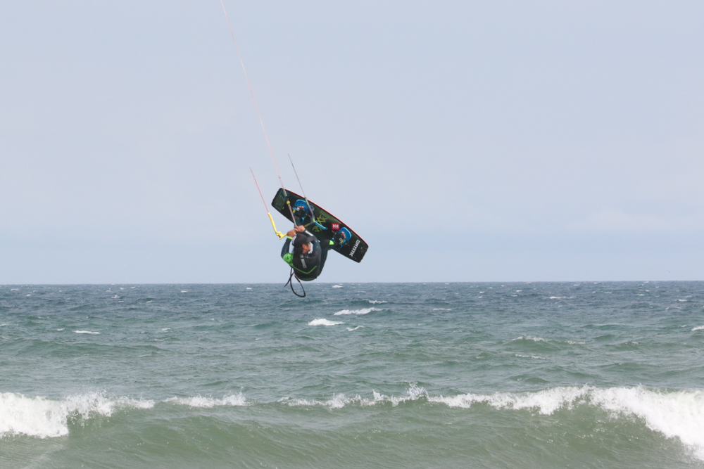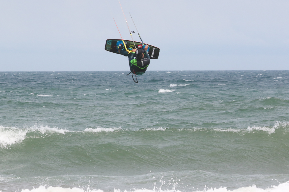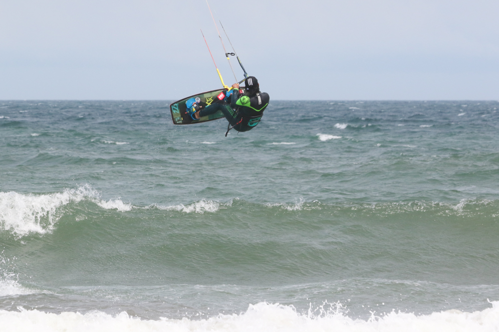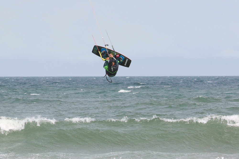 風が強くなりさすがにカイトフォイルはDaveさんだけになりましたがインサイドセクションではトリックを楽しむKouheiくんが目立っていました。