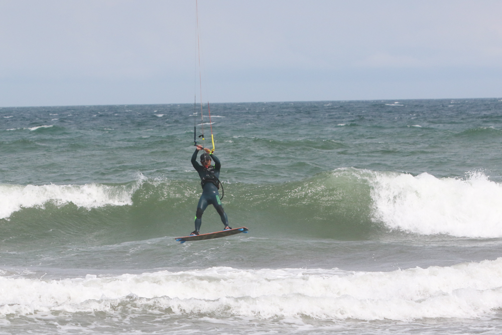 お昼前はカイトサイズ10のコンディションでしたが午後にはカイトサイズ7でもライディングできるコンディション。