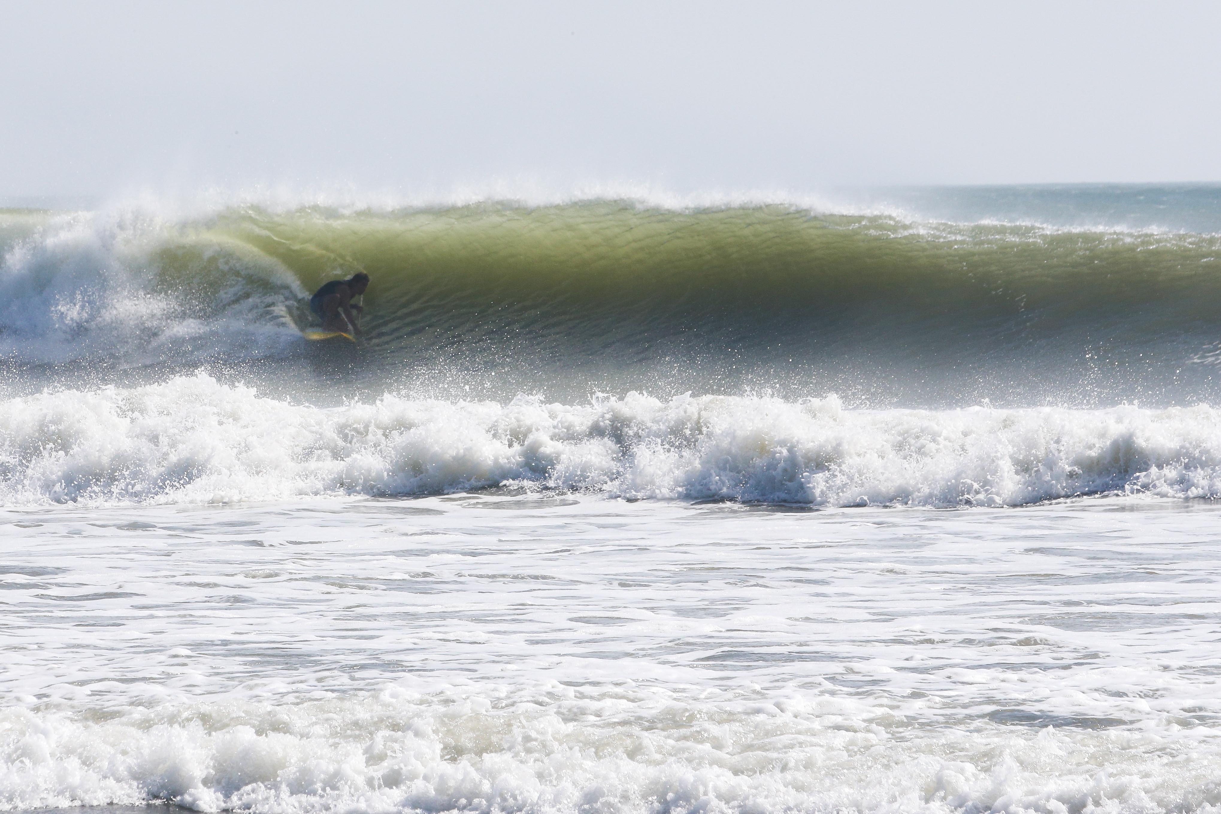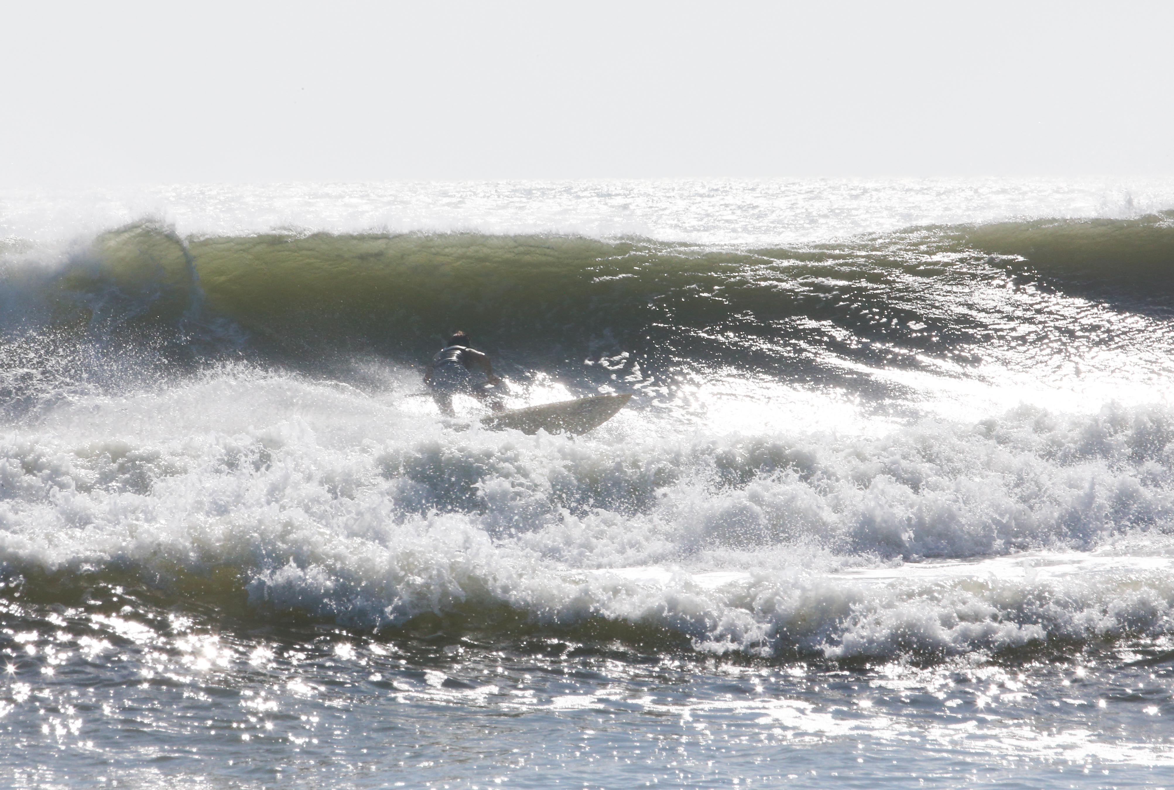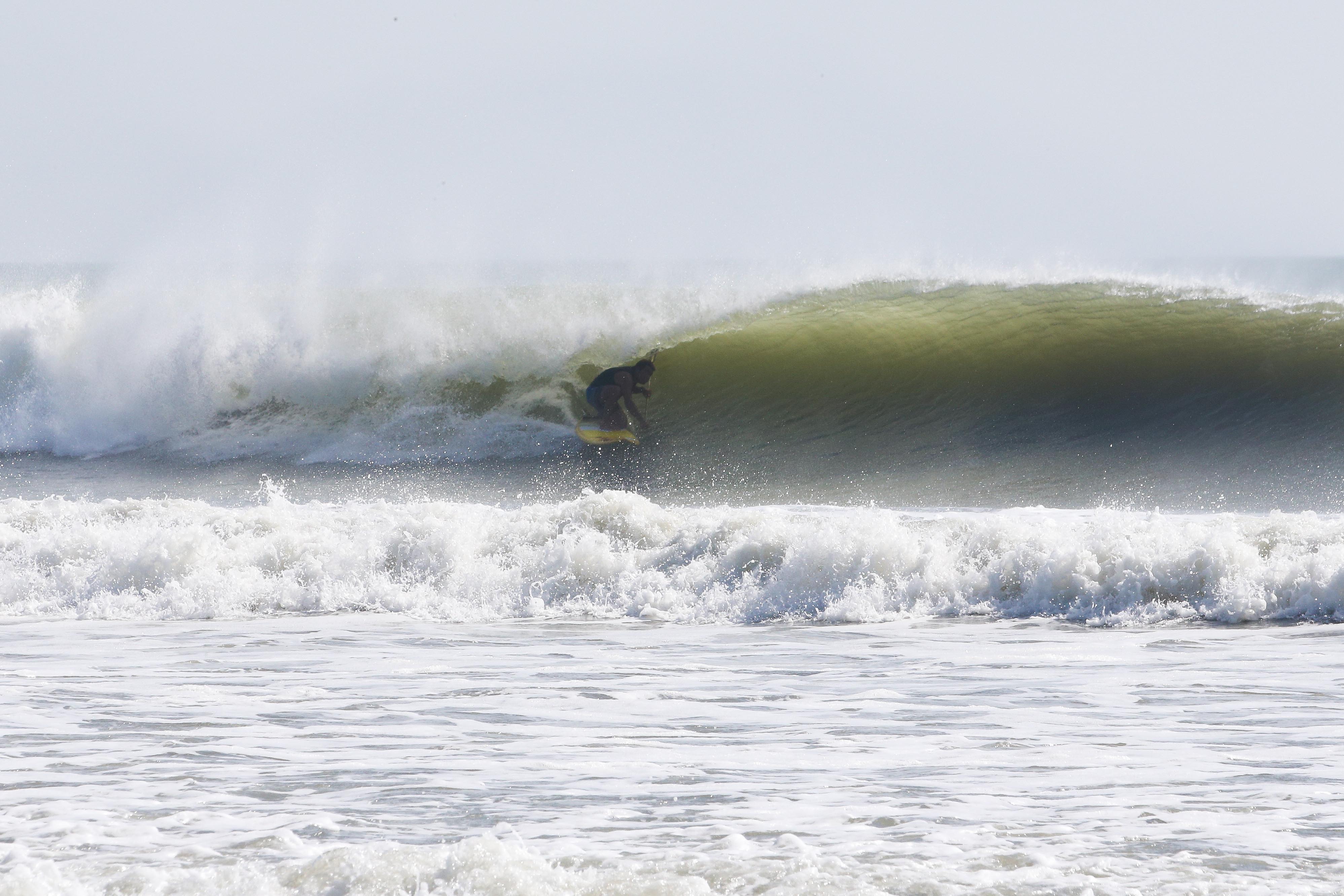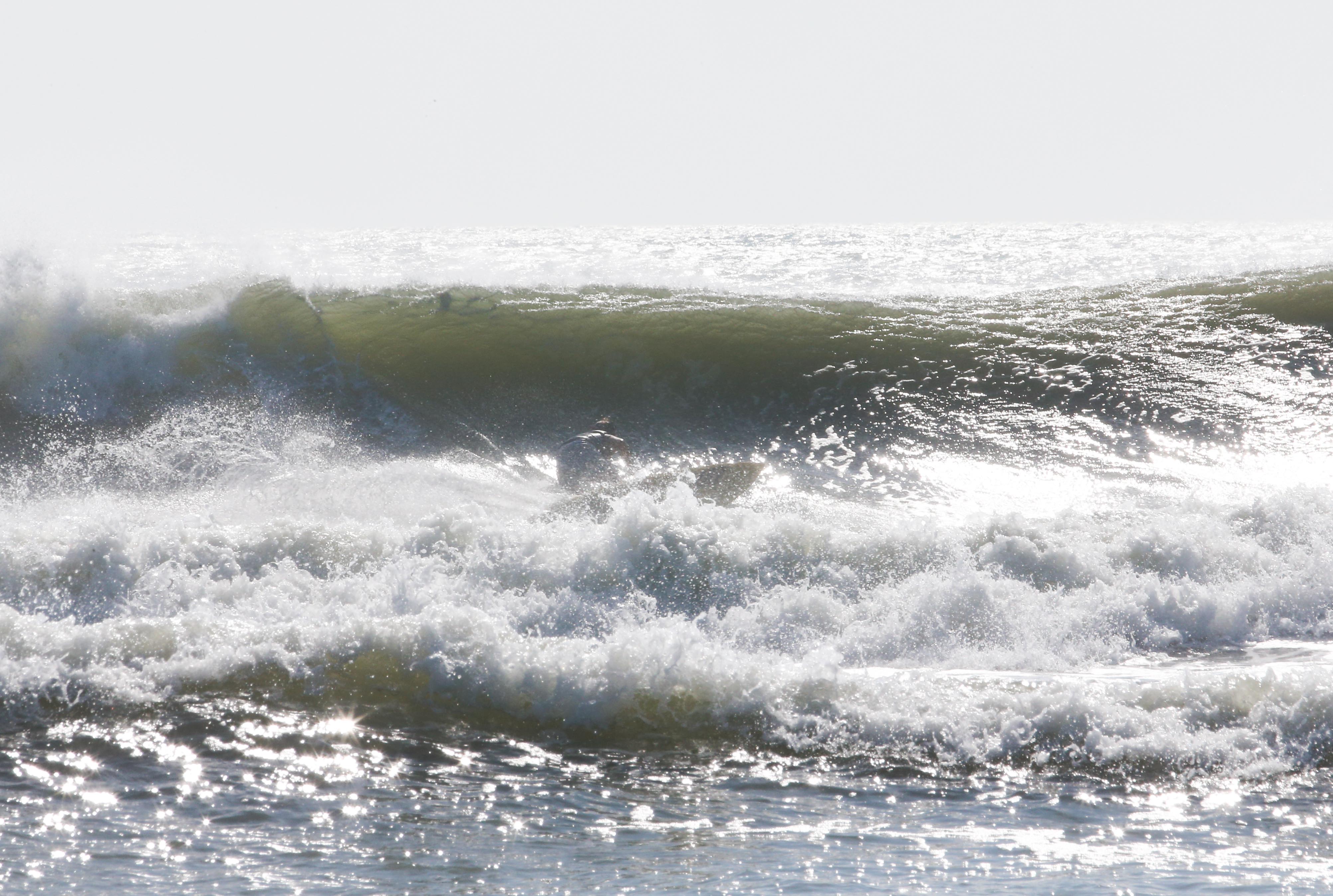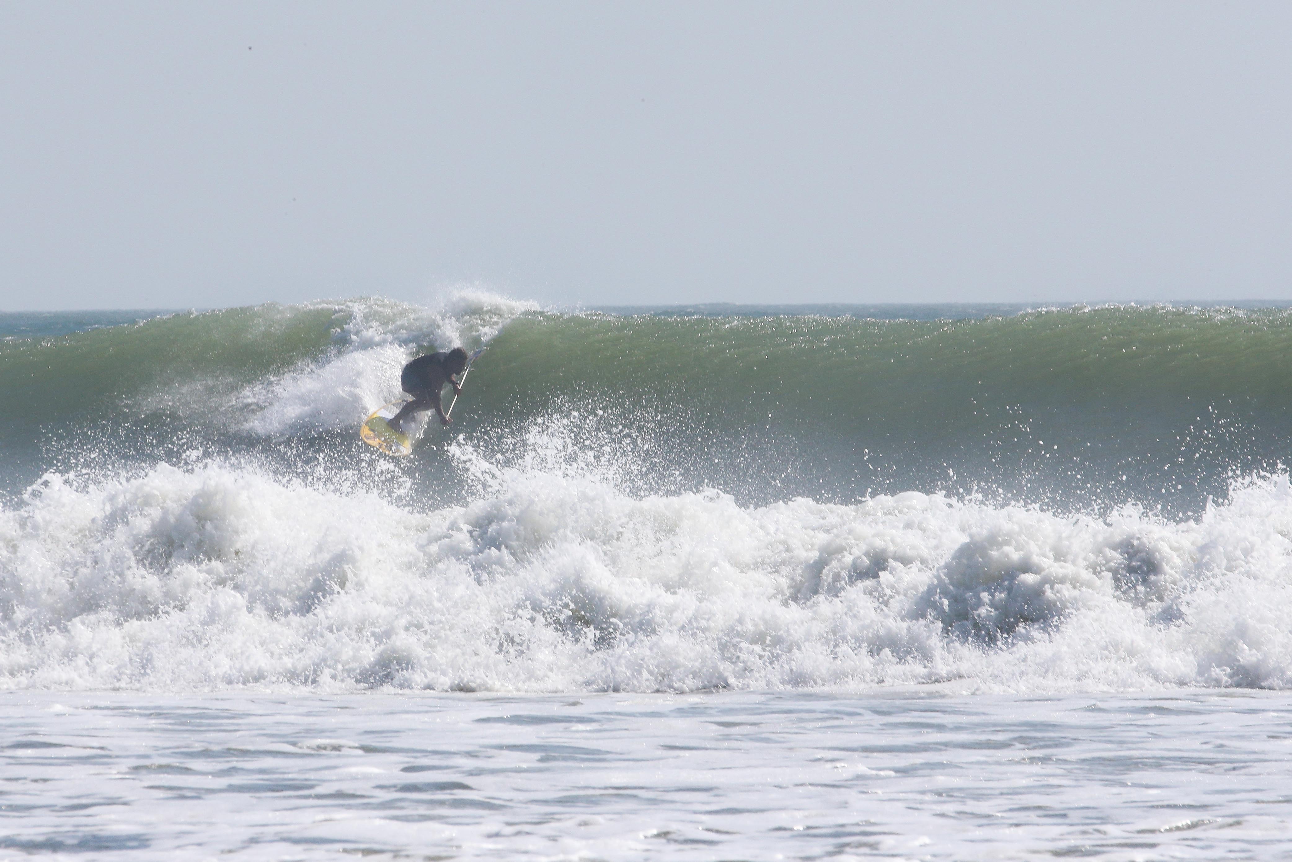 カイトサイズ9でジャストコンディション、波はオーバーヘッド。