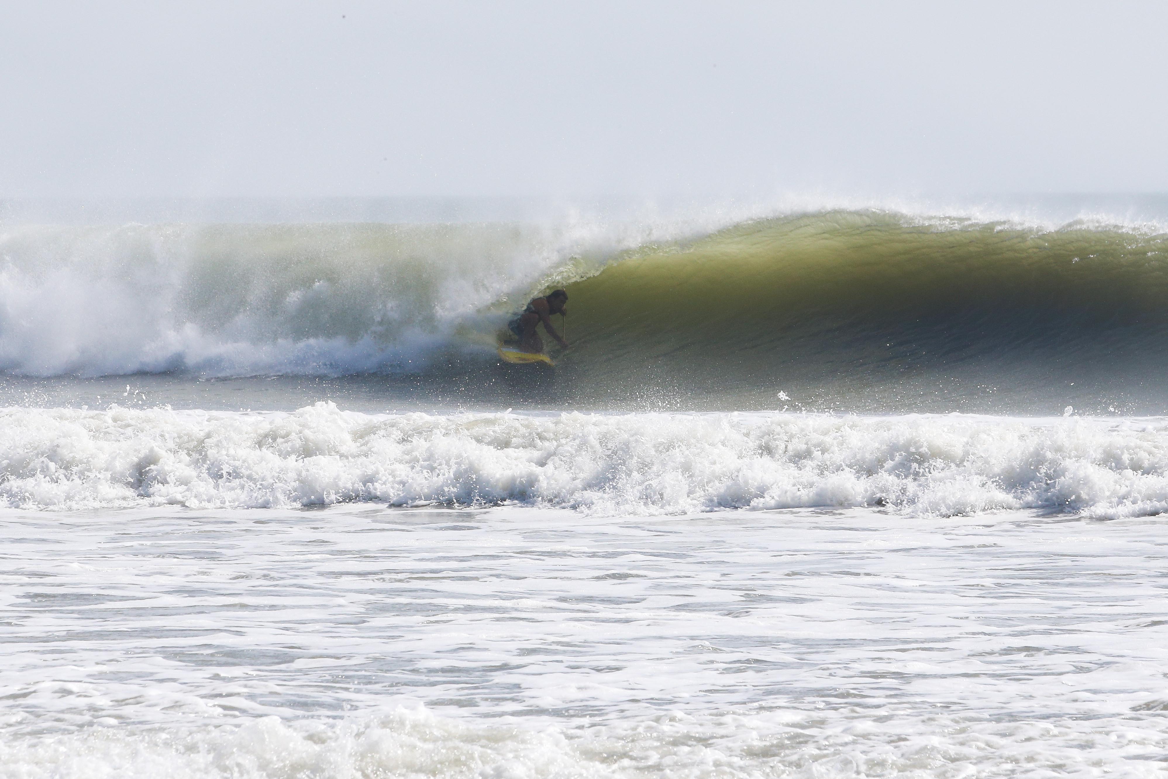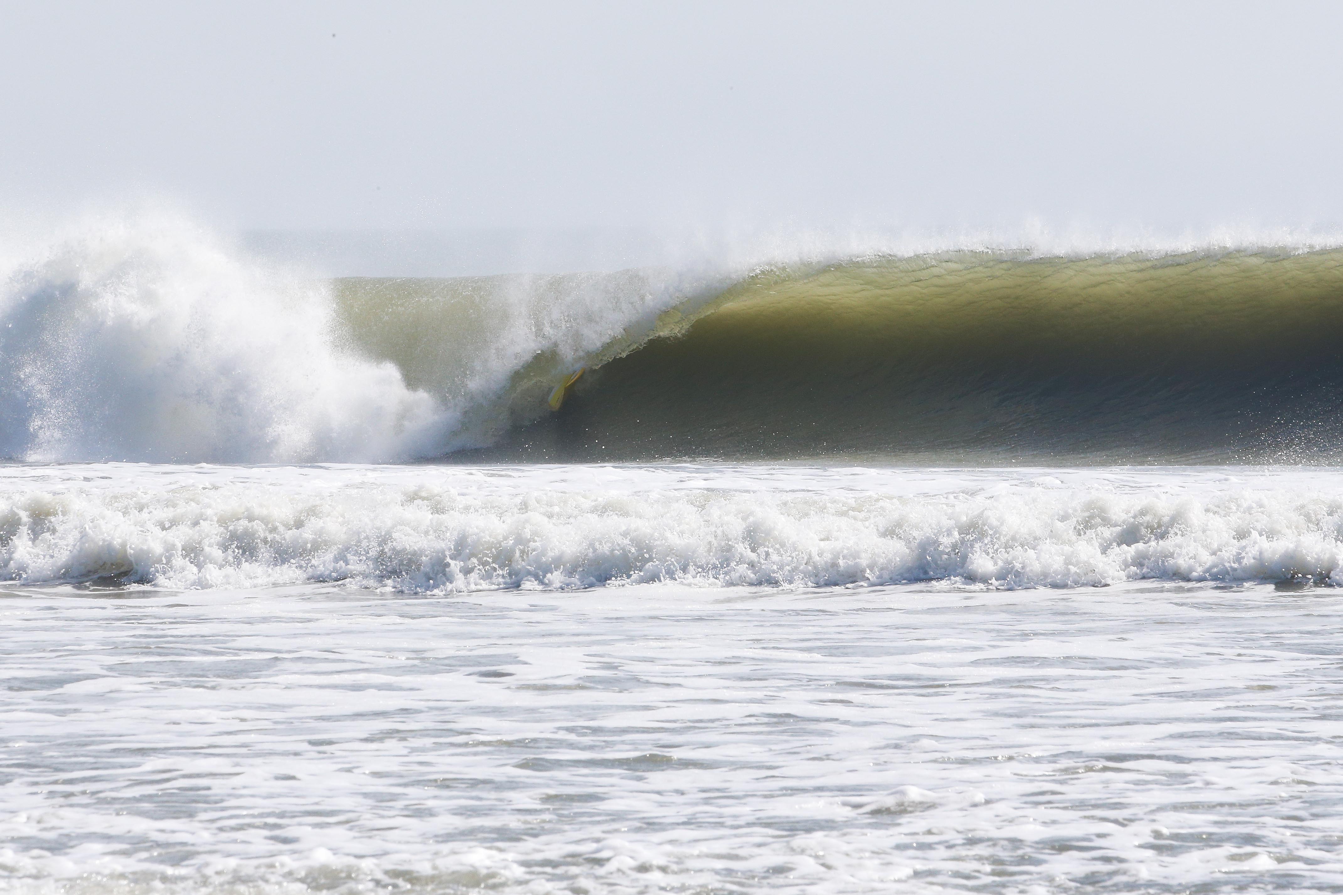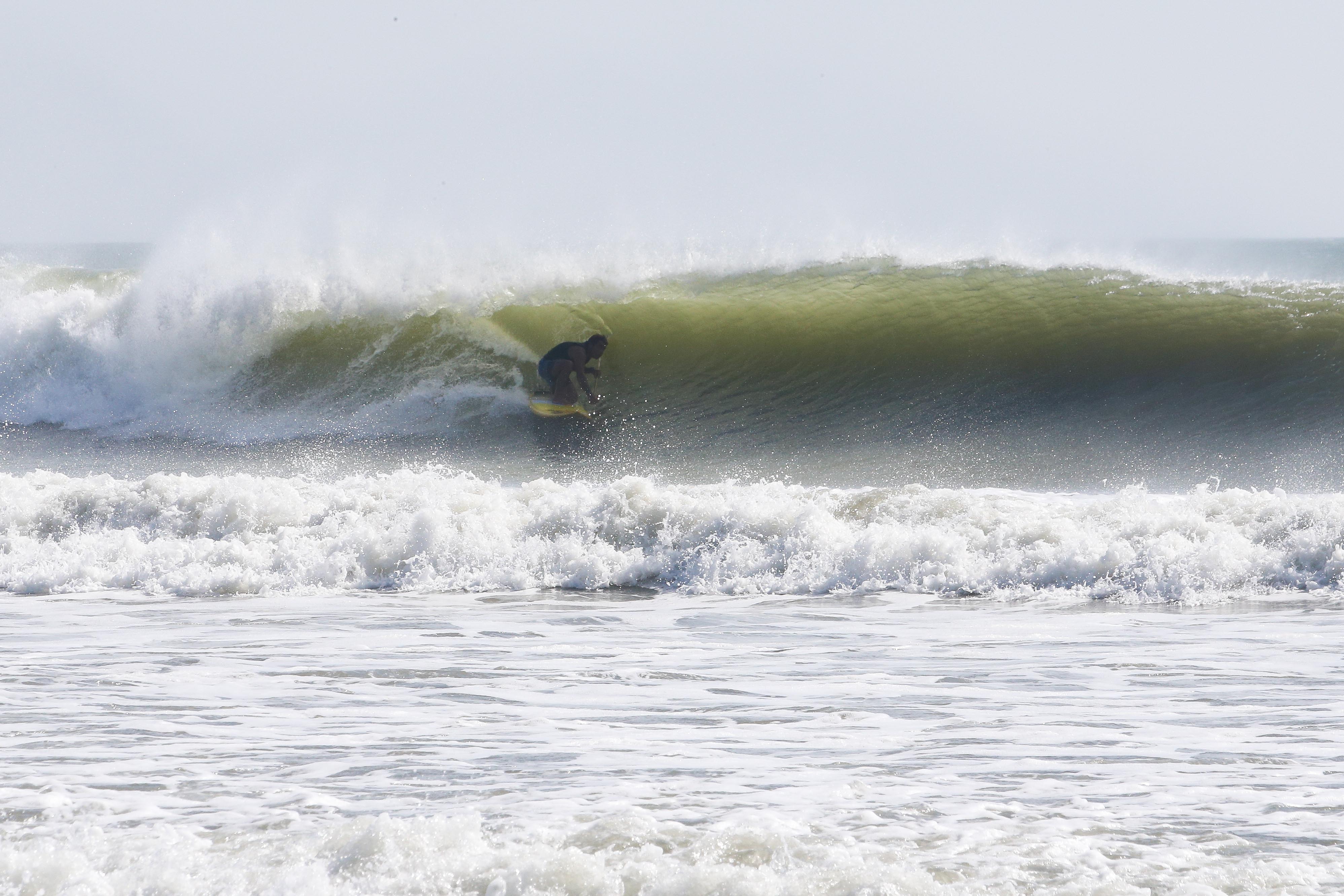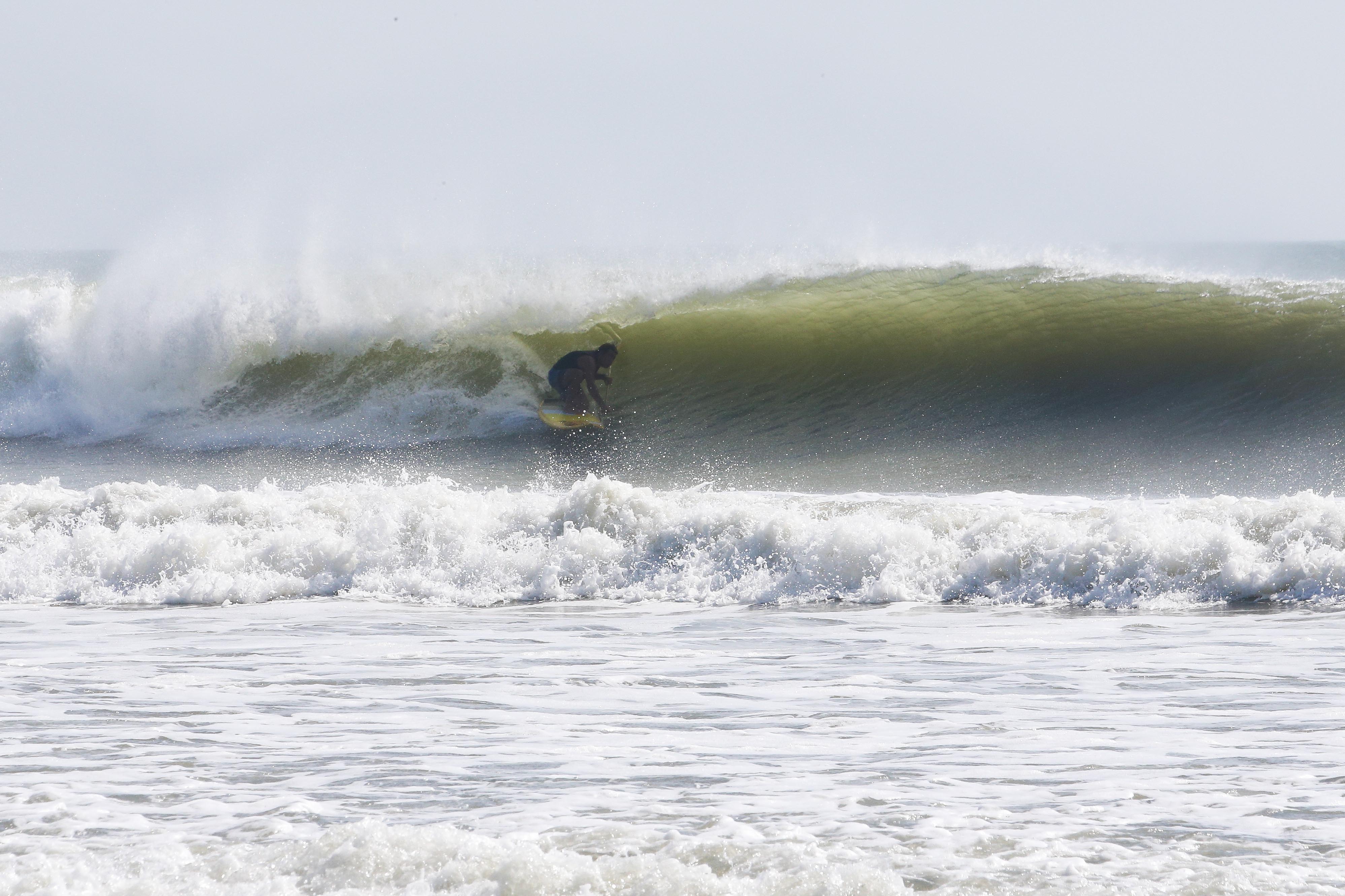 カイトサイズ9でジャストコンディション、波はオーバーヘッド。