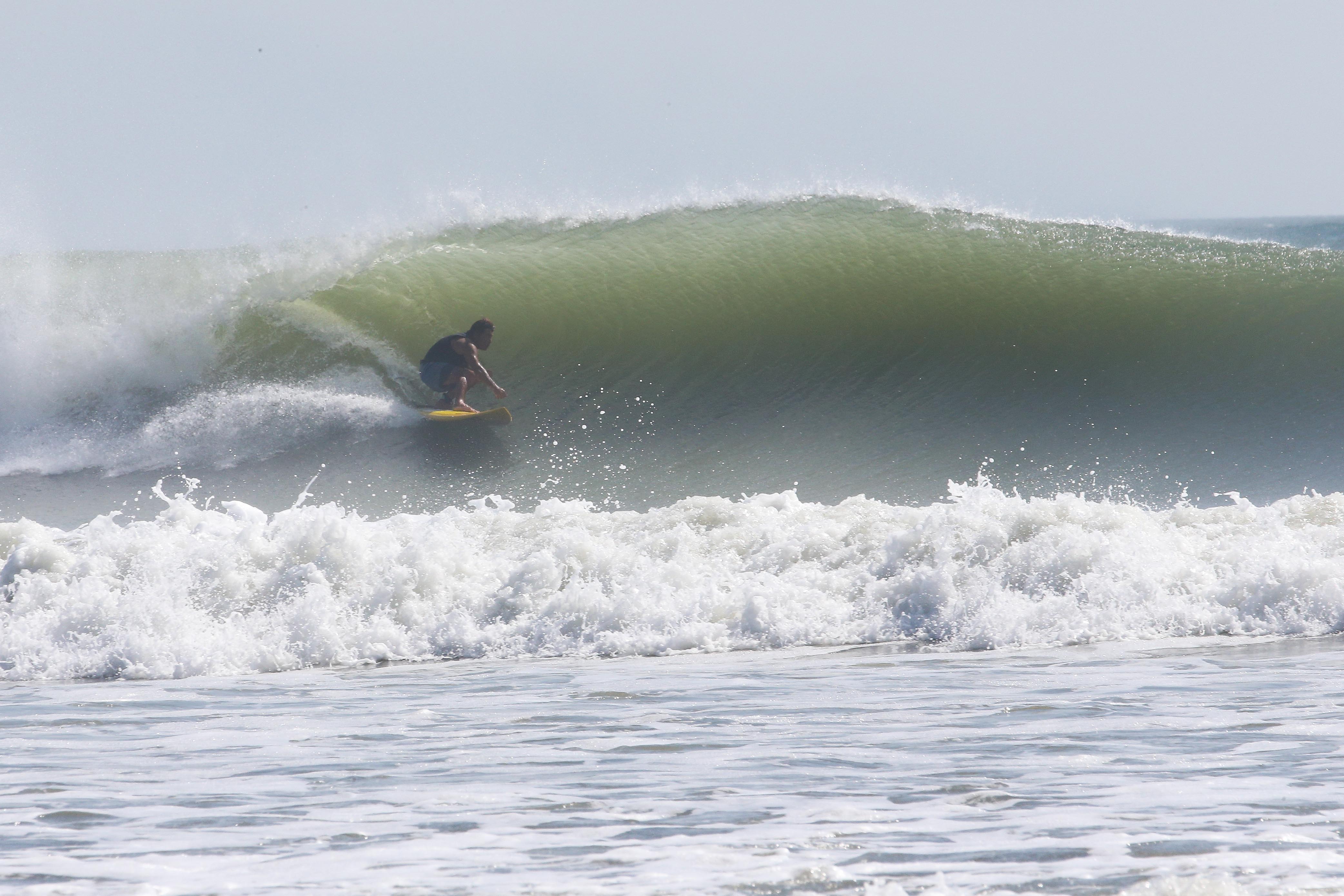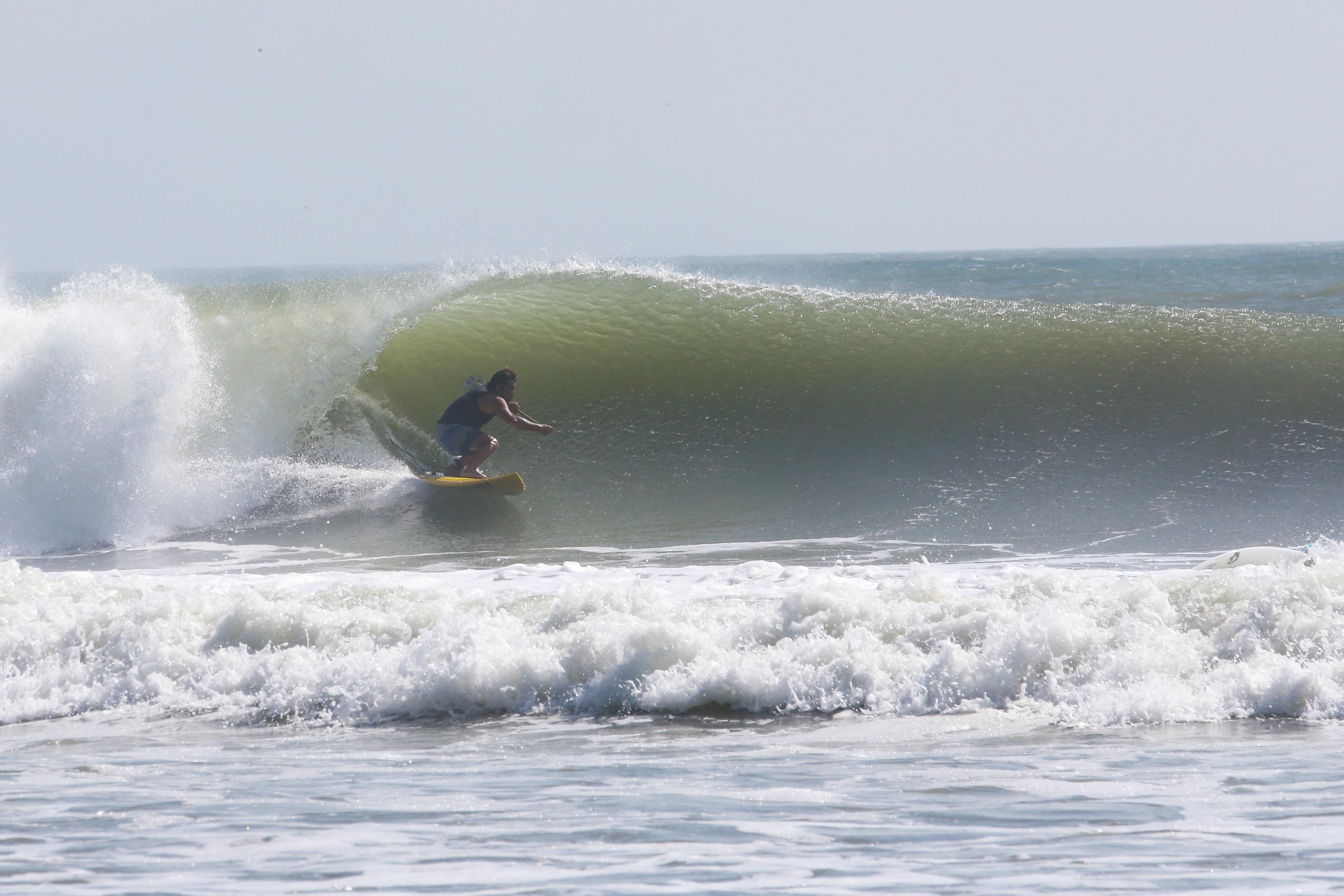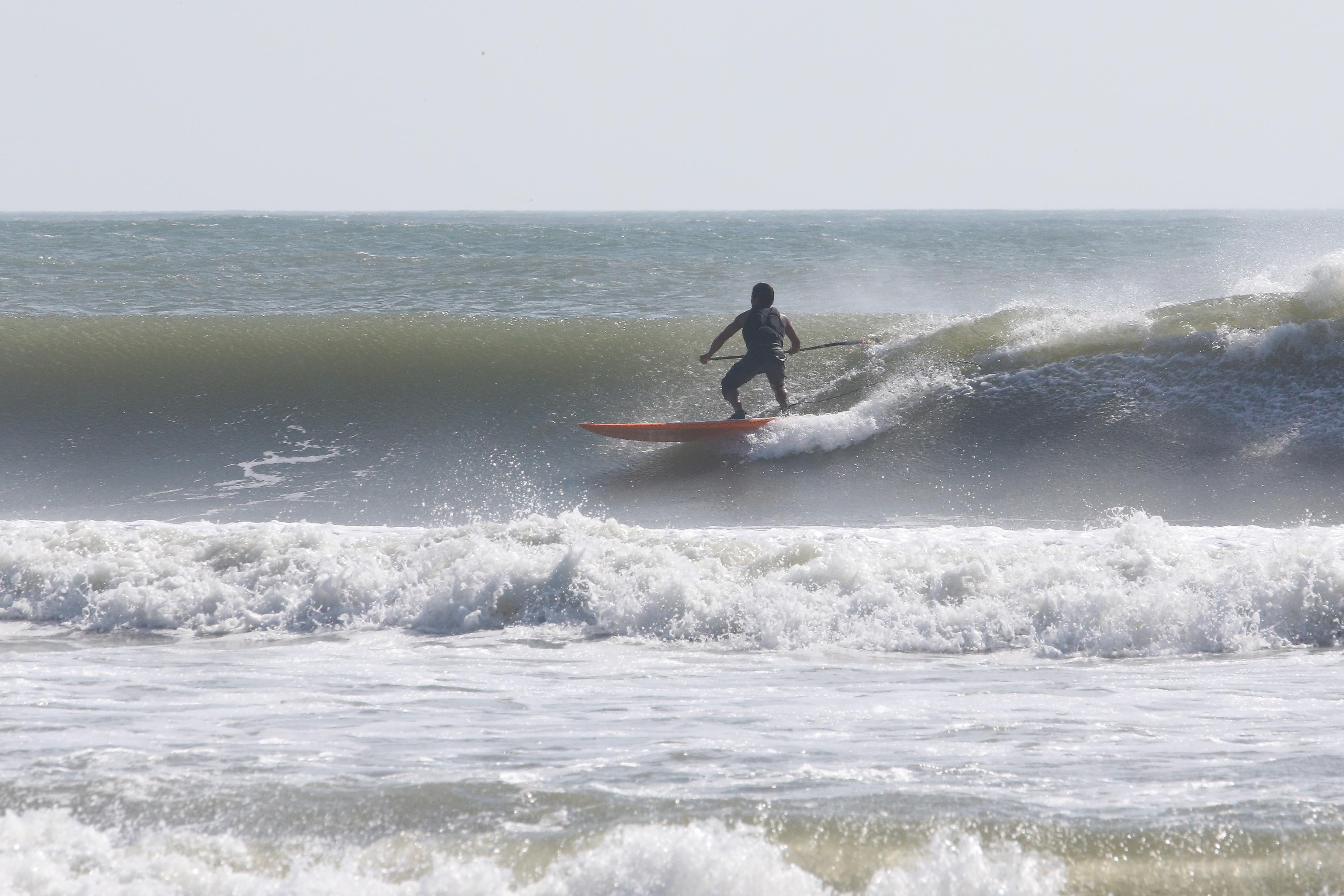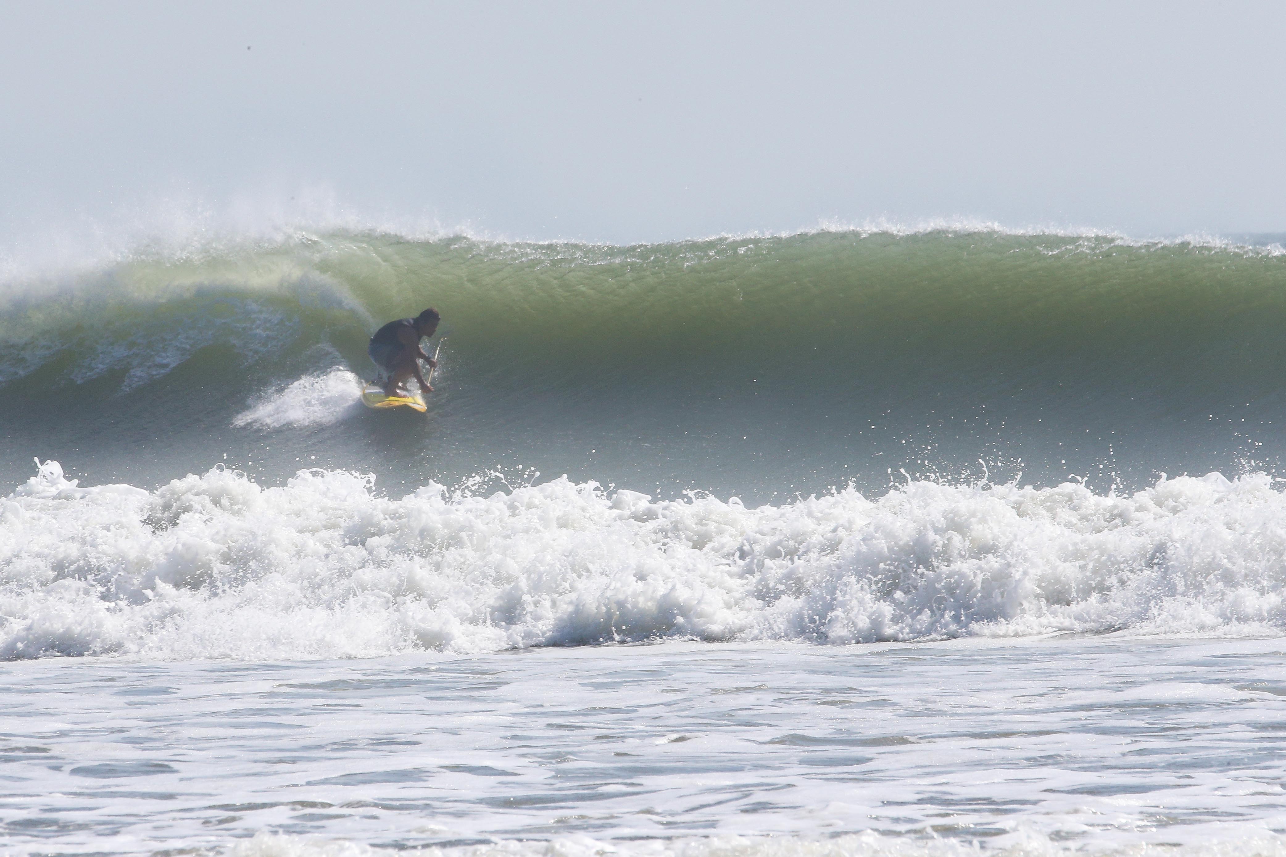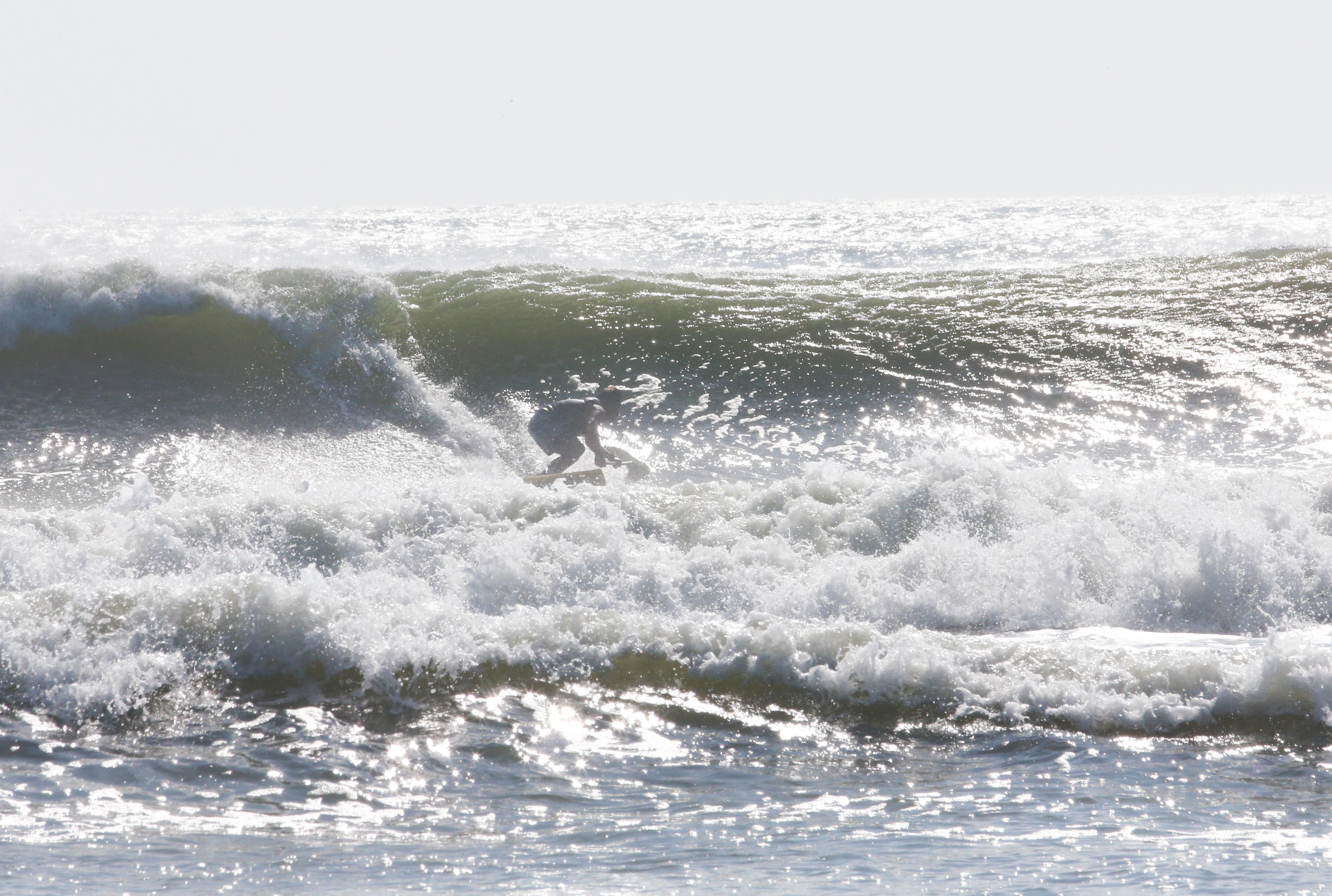 カイトサイズ9でジャストコンディション、波はオーバーヘッド。