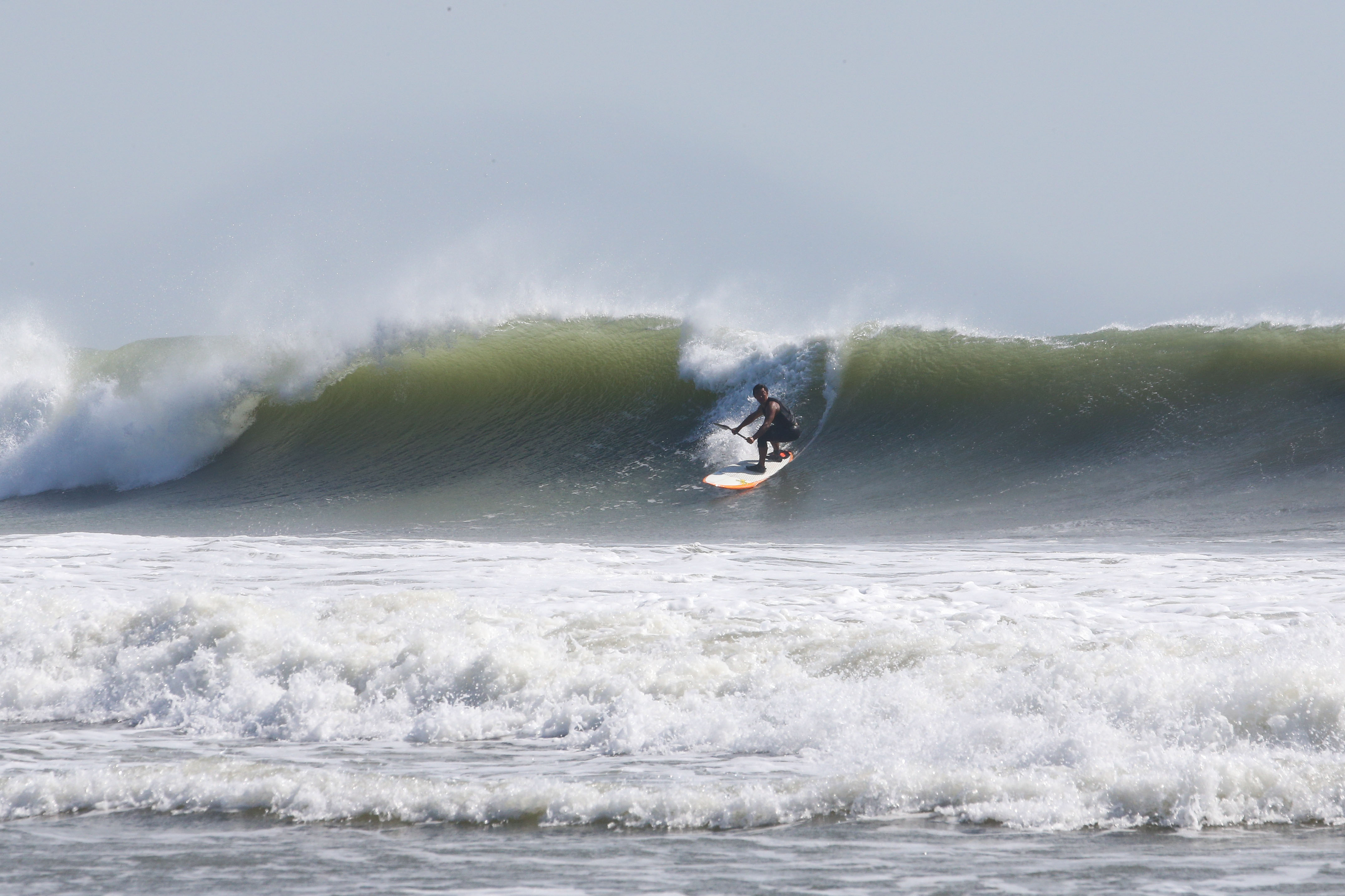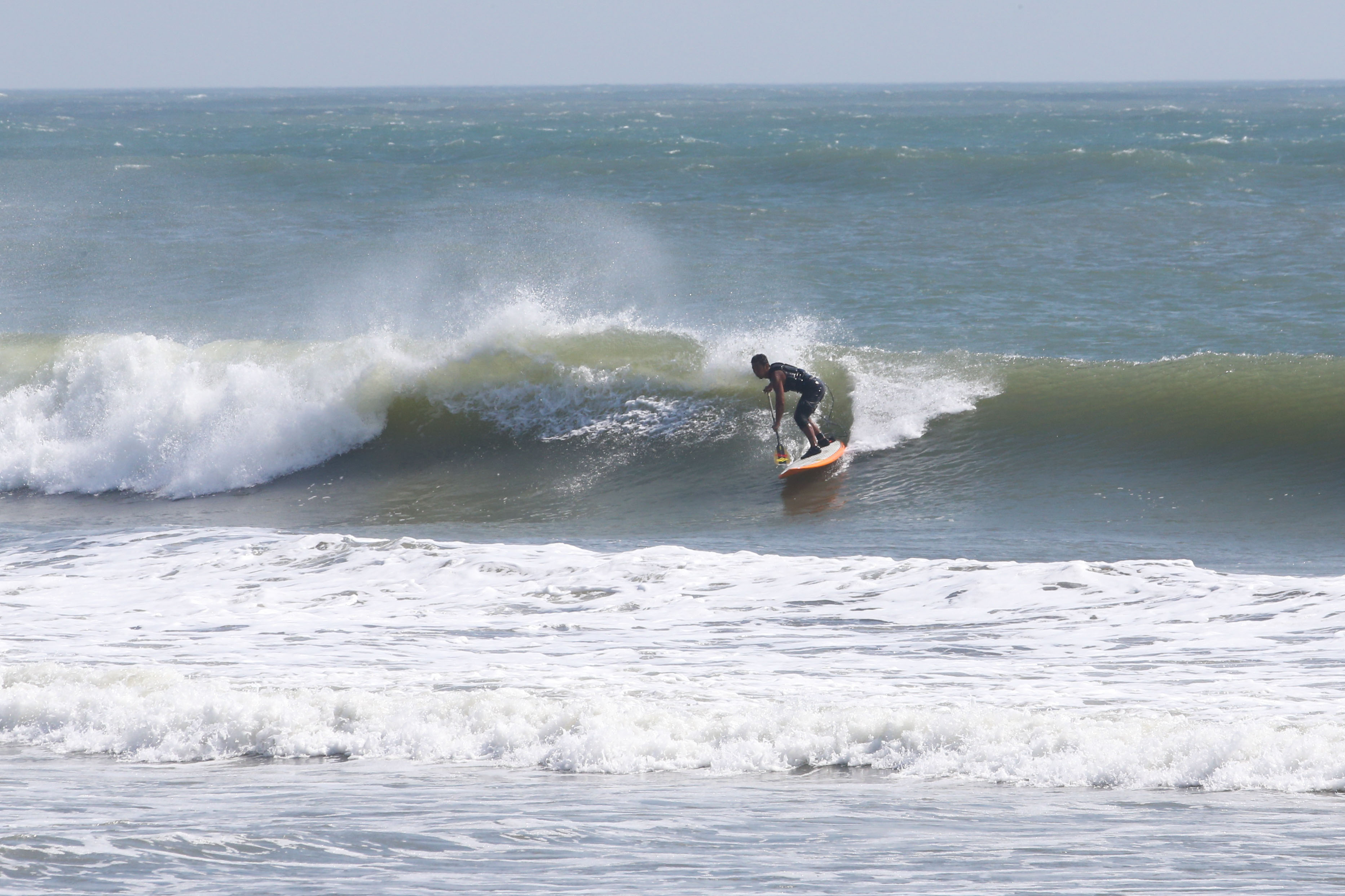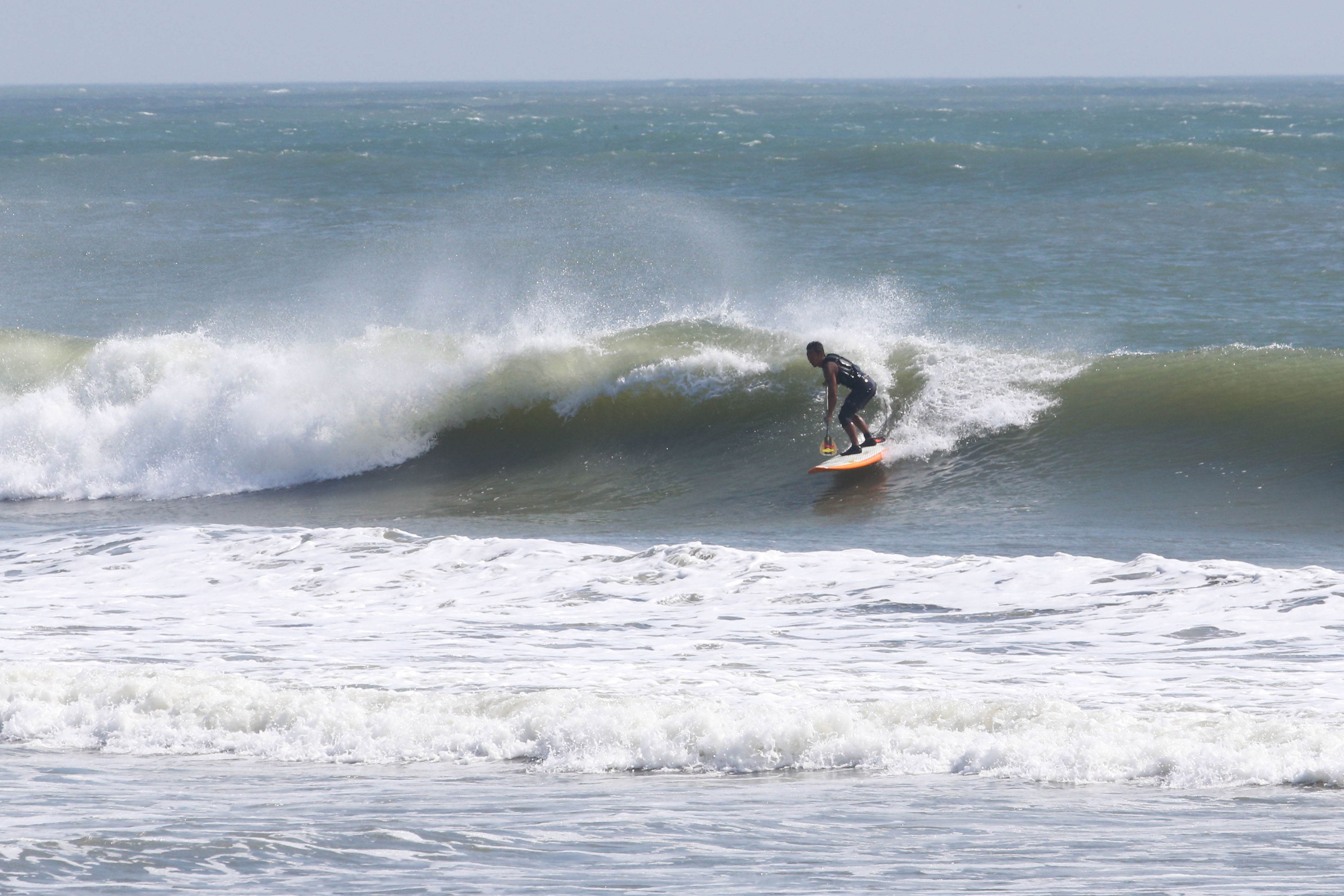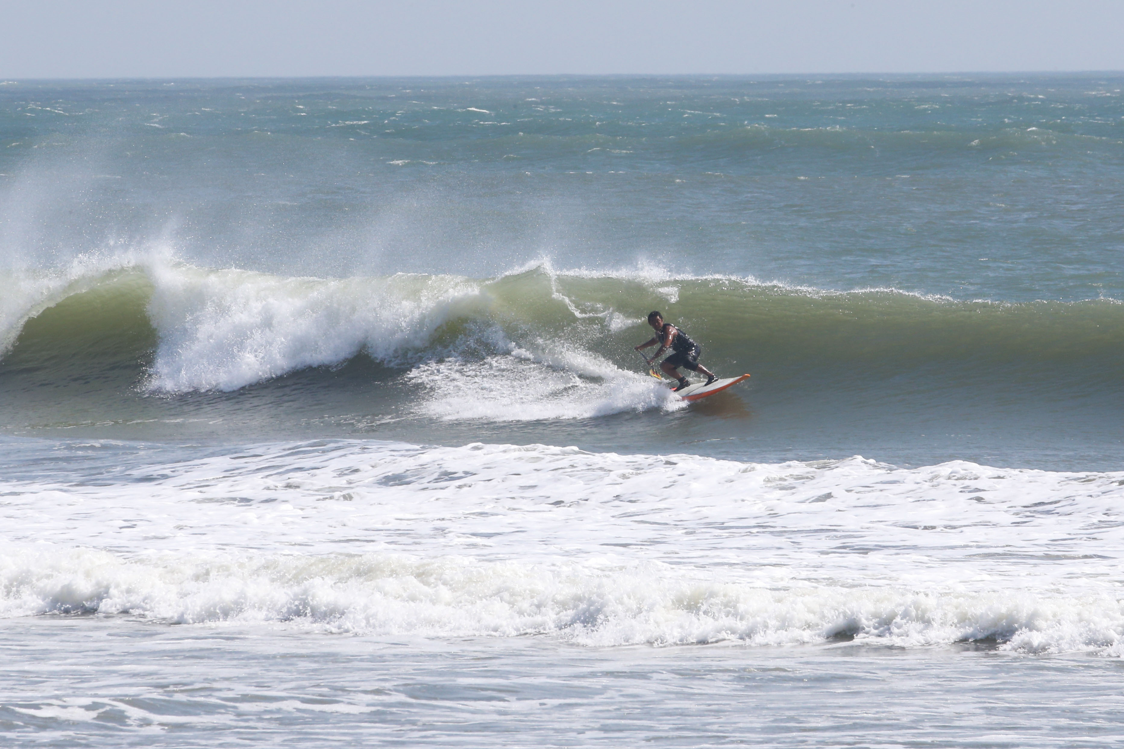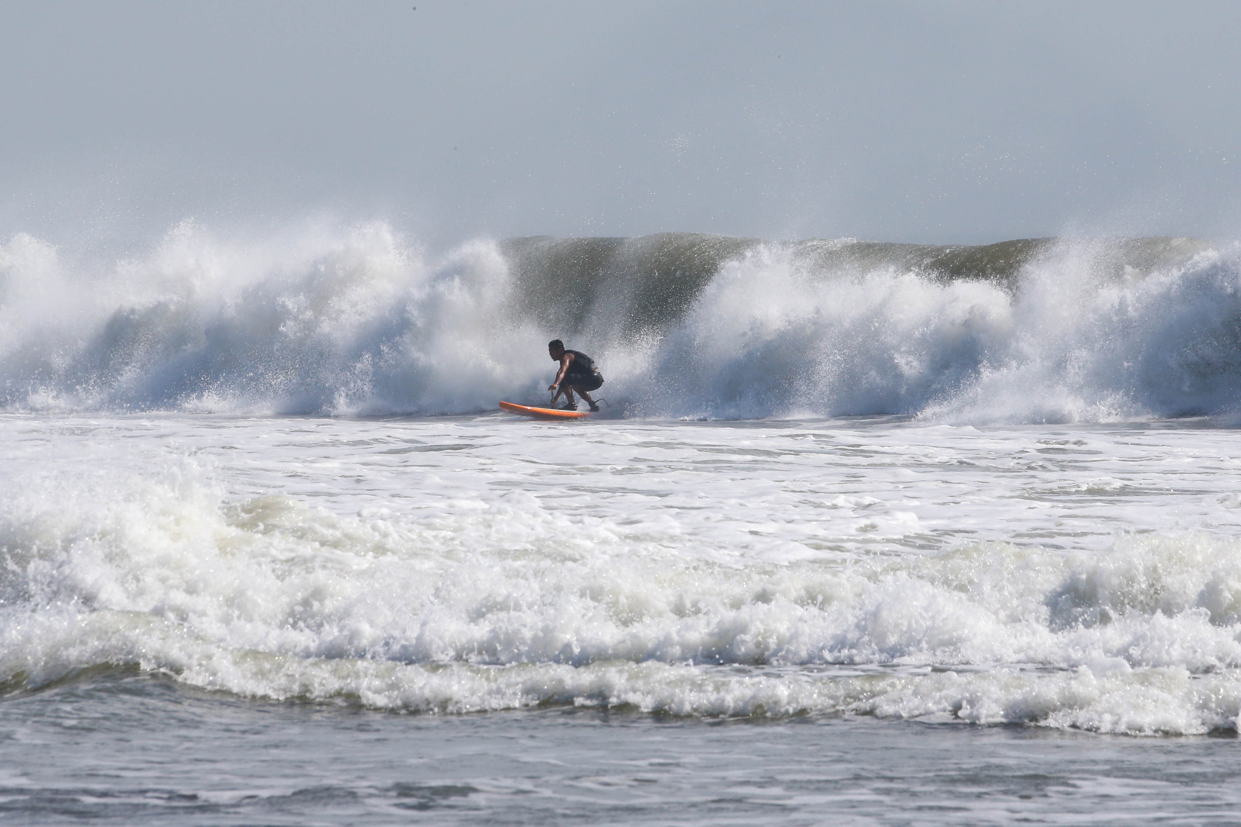 カイトサイズ9でジャストコンディション、波はオーバーヘッド。