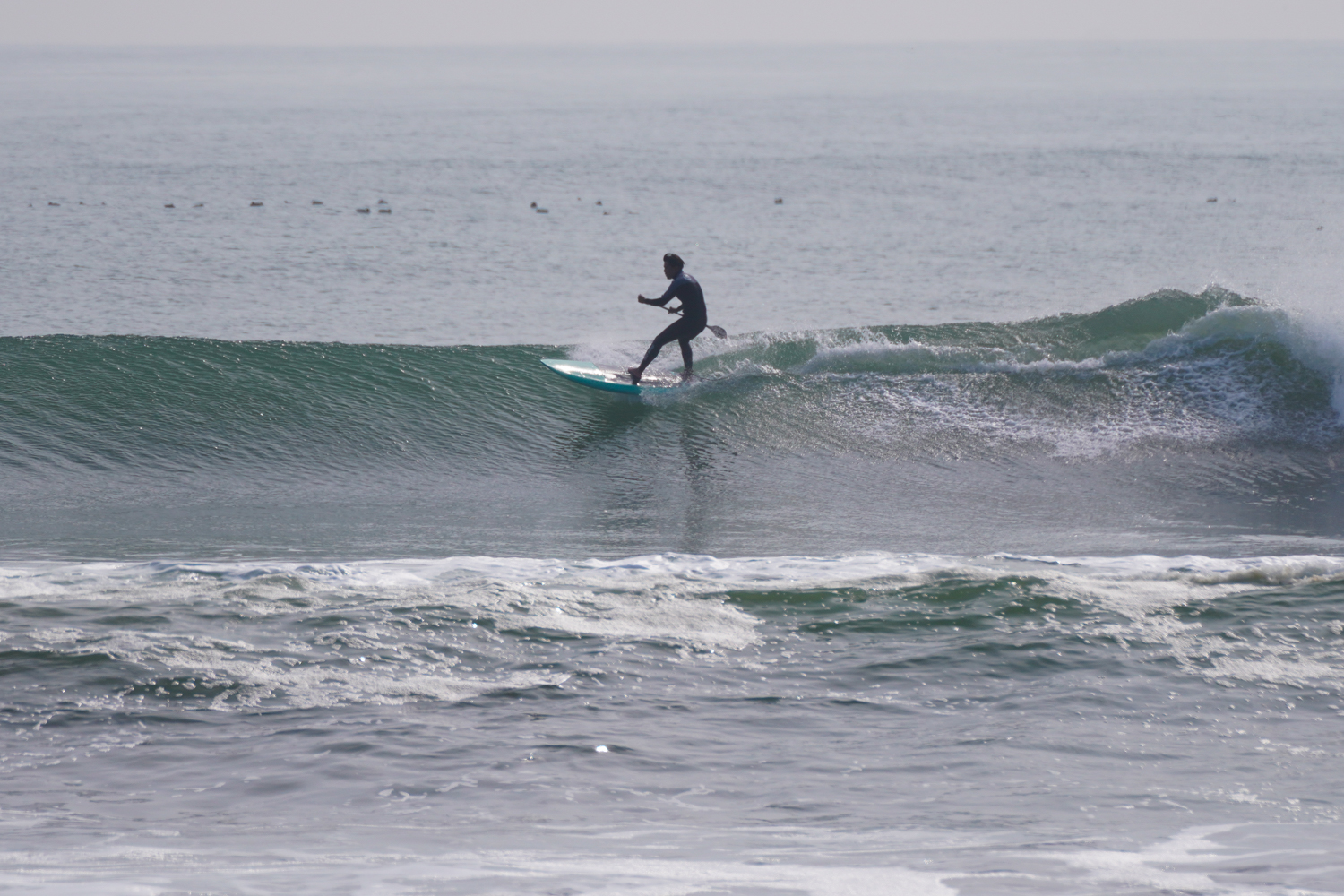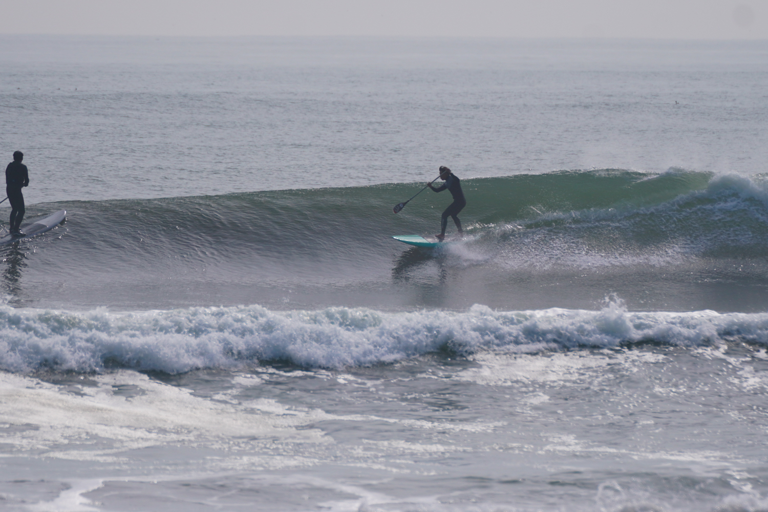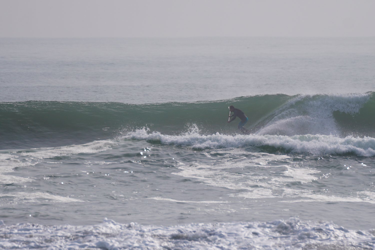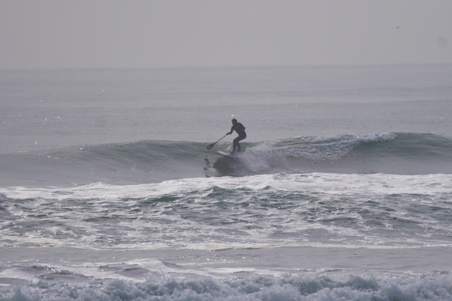 朝の潮の多い時間帯は波にまとまりがないコンディションでしたが朝2くらいの時間帯になるとどんどん波がまとまりはじめお昼にかけては風もまだ弱く最高のSUPサーフィンコンディションでした。