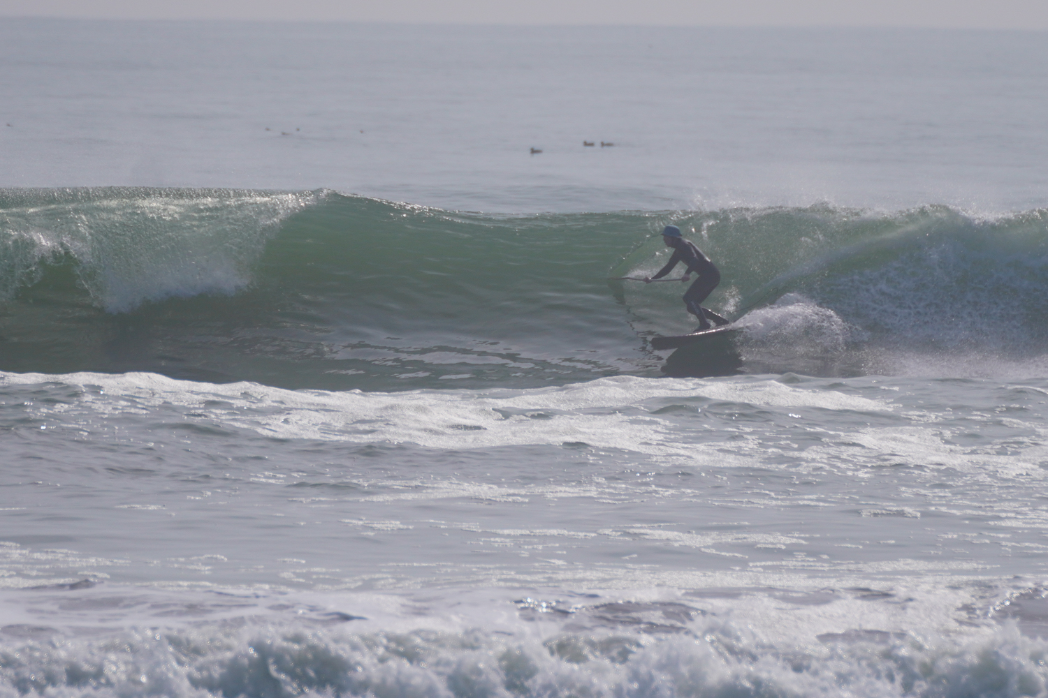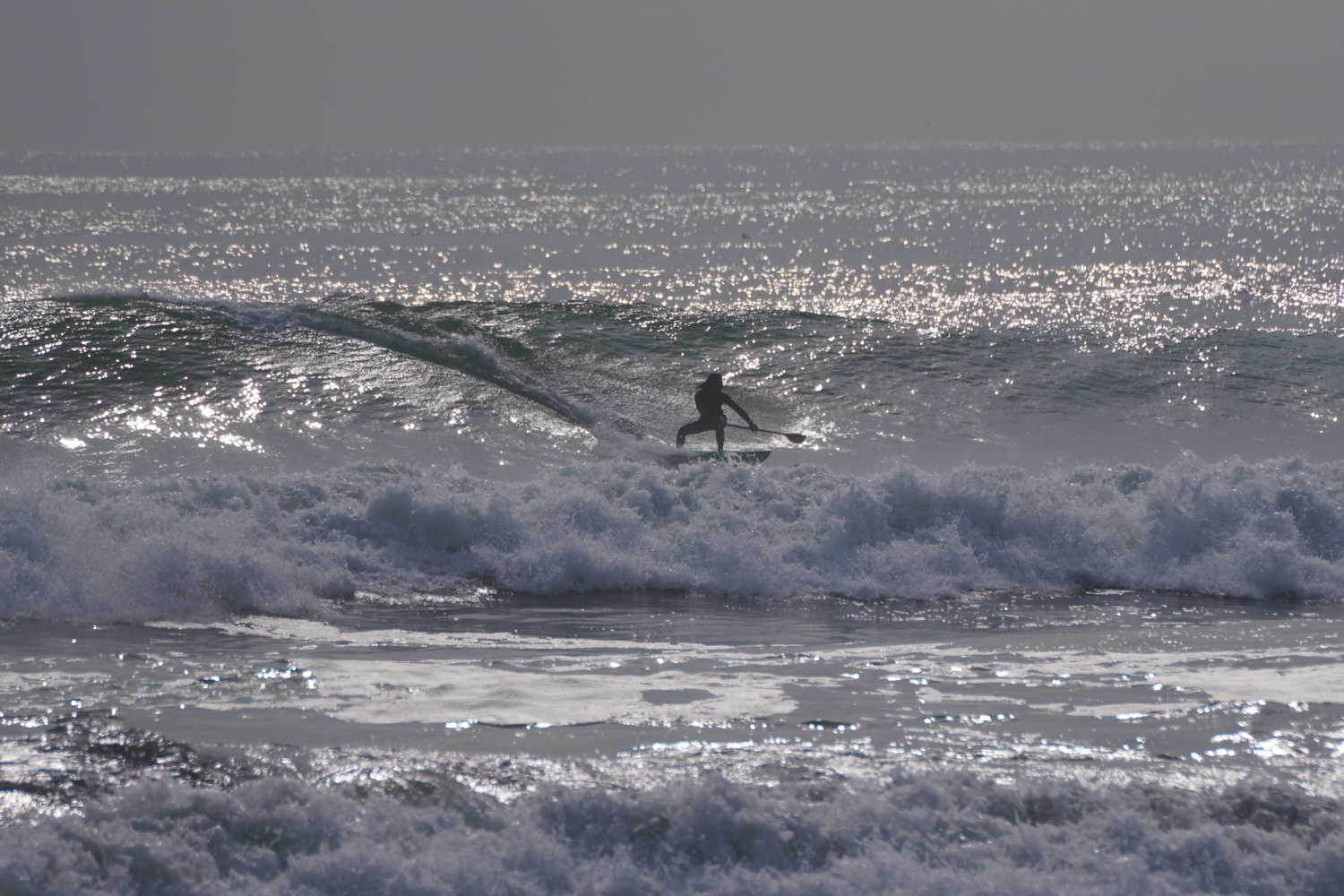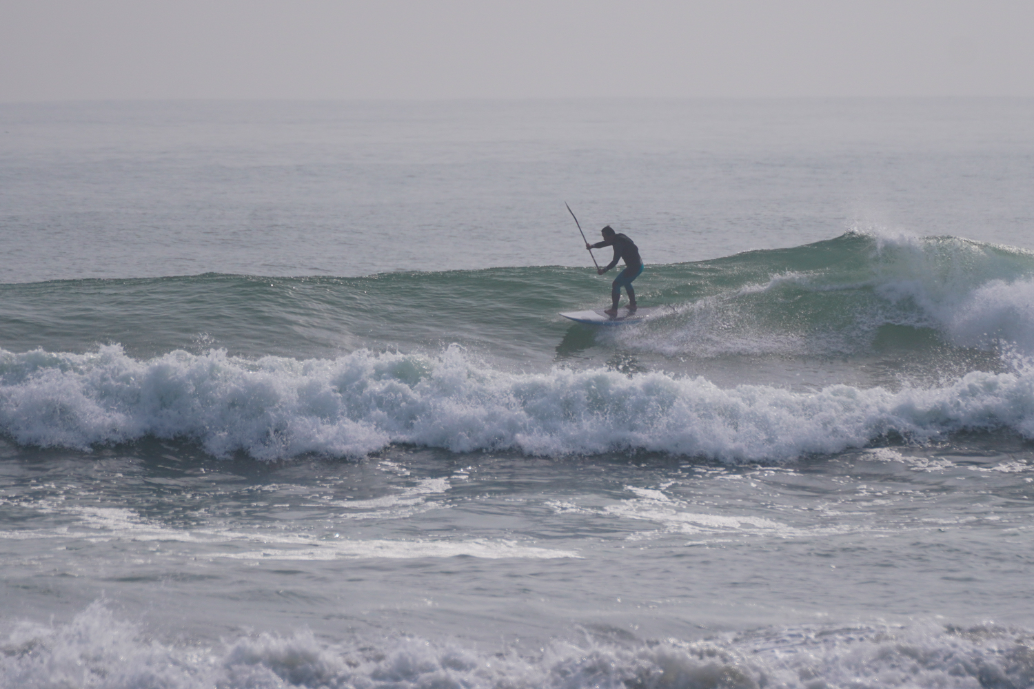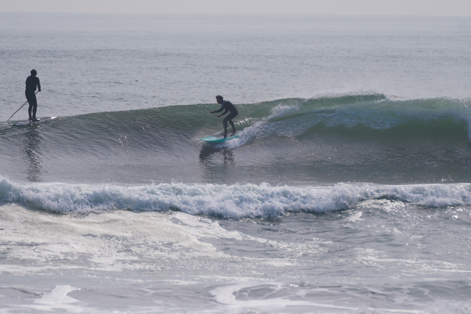 朝の潮の多い時間帯は波にまとまりがないコンディションでしたが朝2くらいの時間帯になるとどんどん波がまとまりはじめお昼にかけては風もまだ弱く最高のSUPサーフィンコンディションでした。