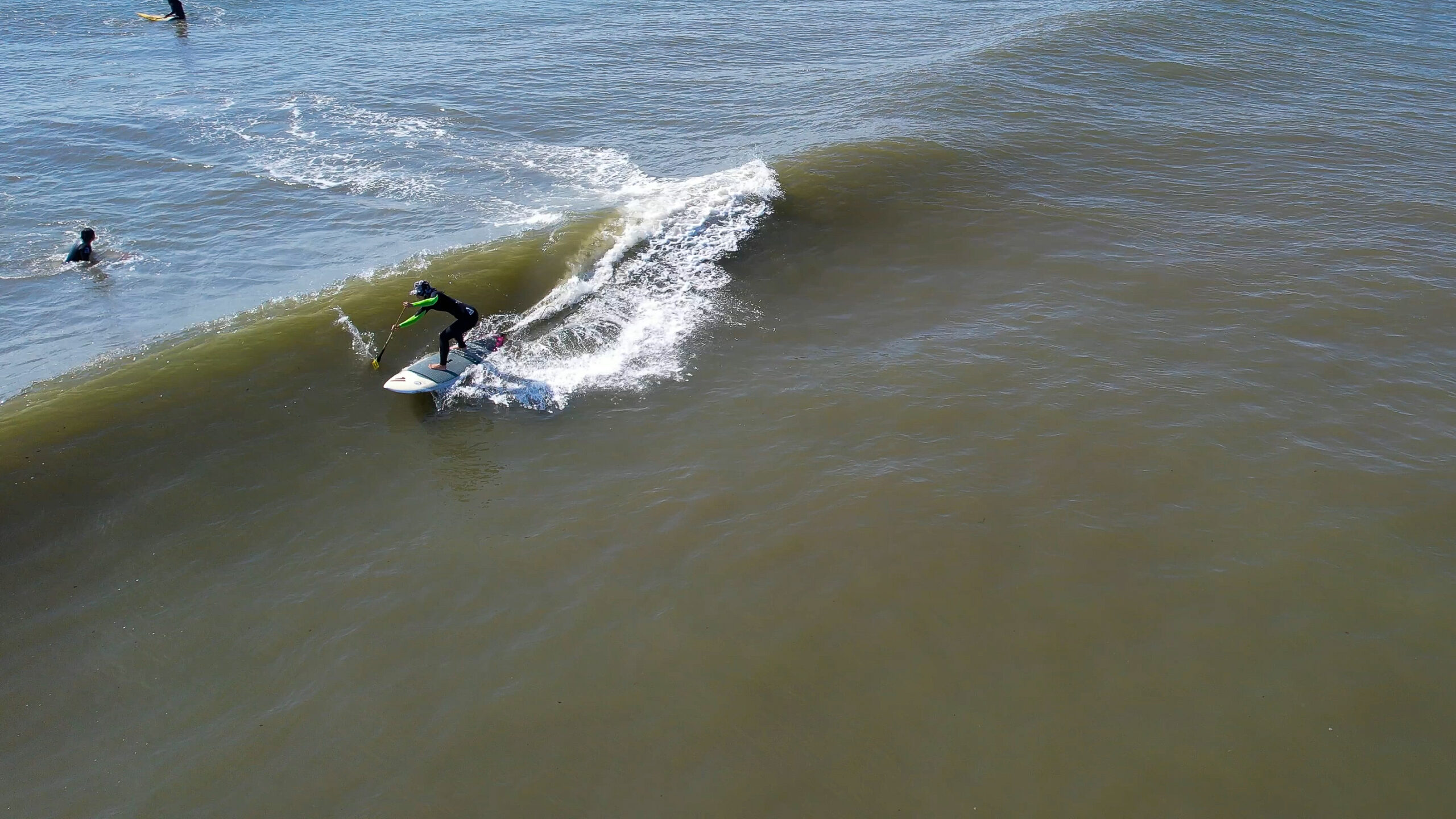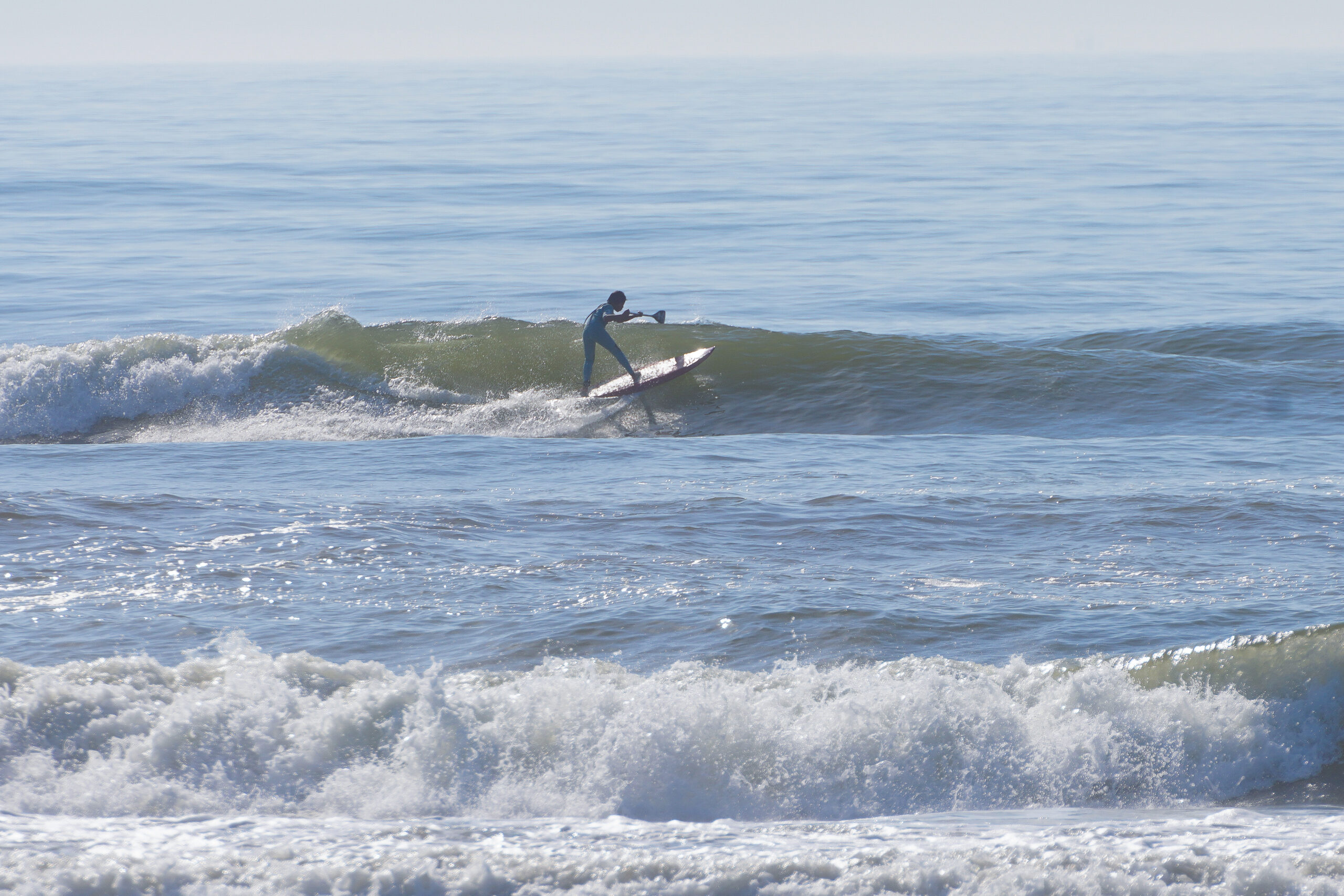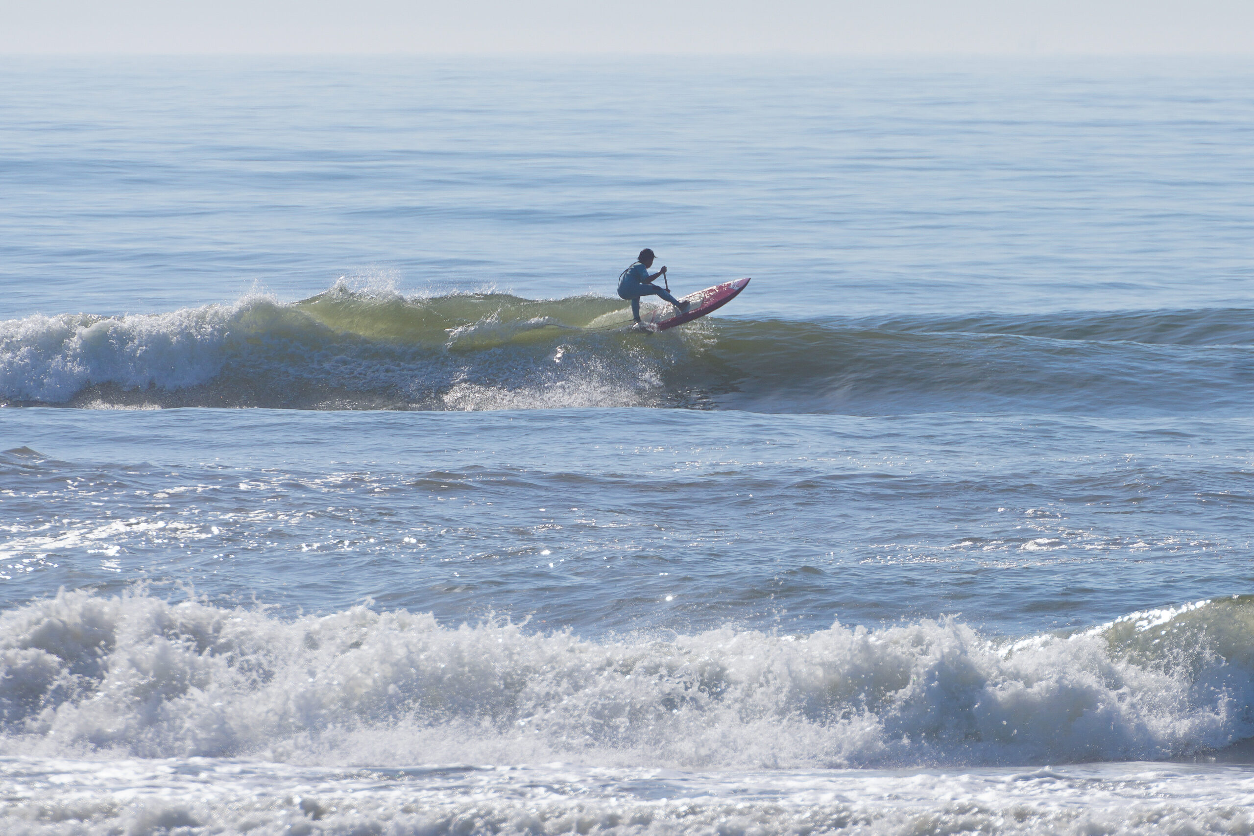 SUPサーフ初めてからまだ時間がたっていないにもう良いラインで波乗りをできるようになった1chan。