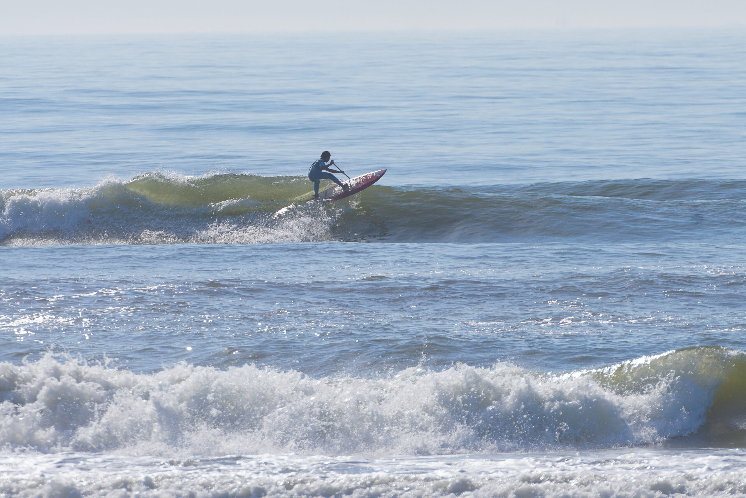 昨日はハードコンディション、今日はメローなコンディションでのSUPサーフを楽しんでいたMr.Anzai