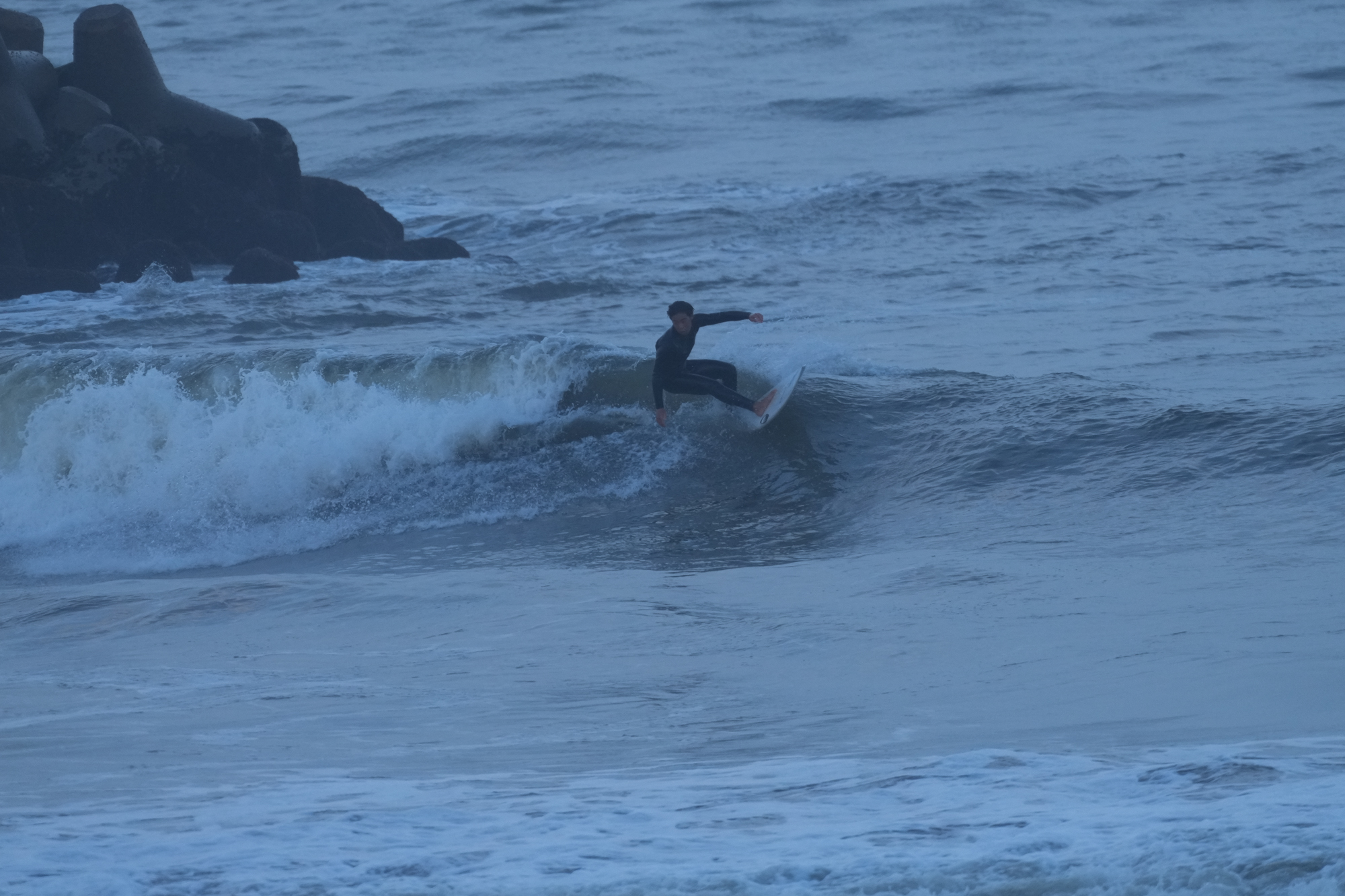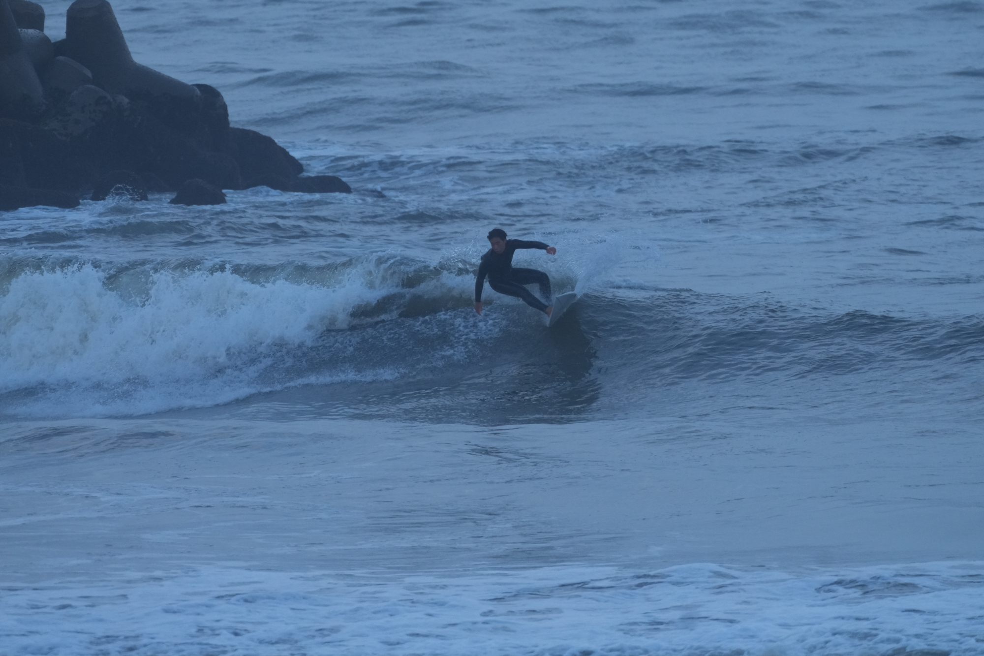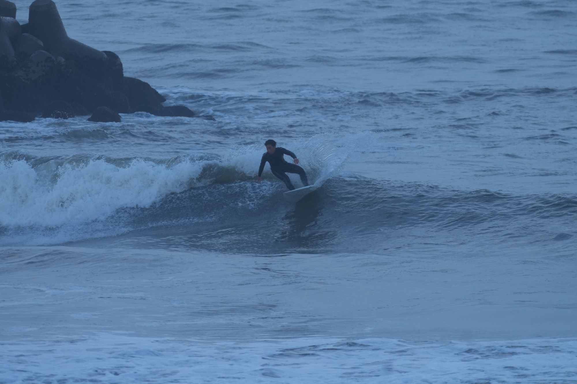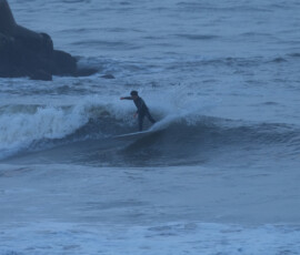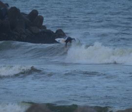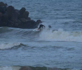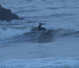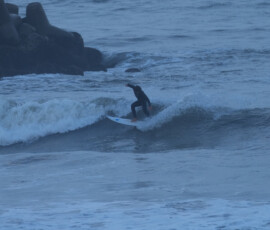 夕方、Ryuはクラスメイトのイツキとホームで波乗り。