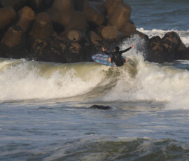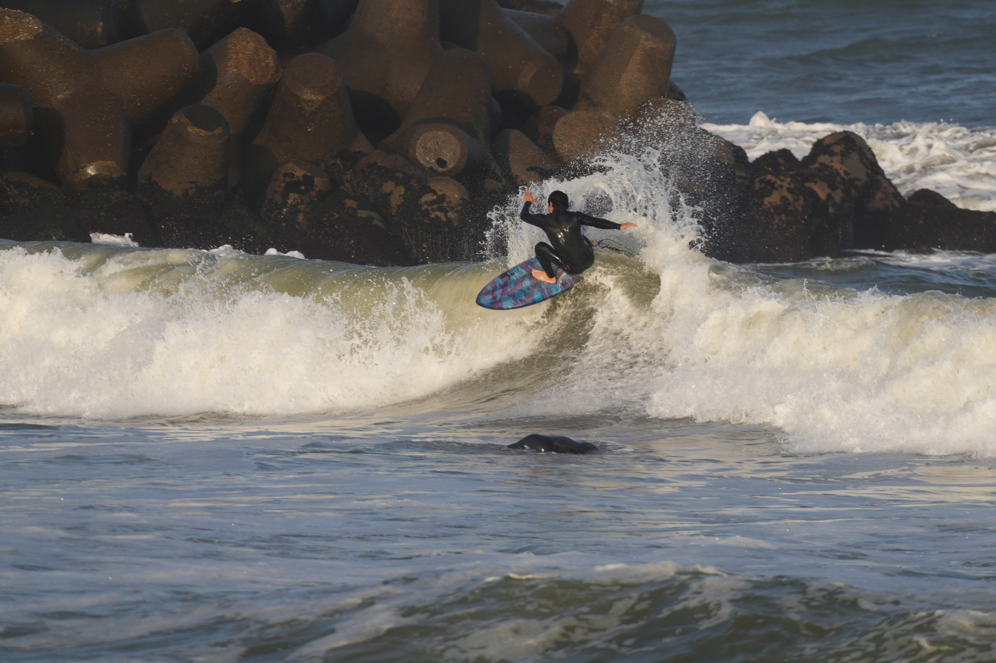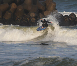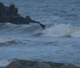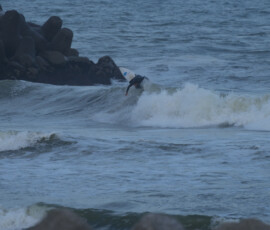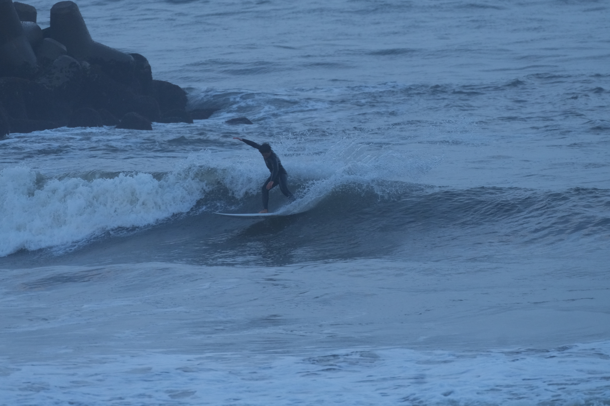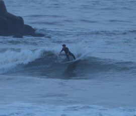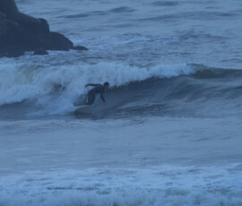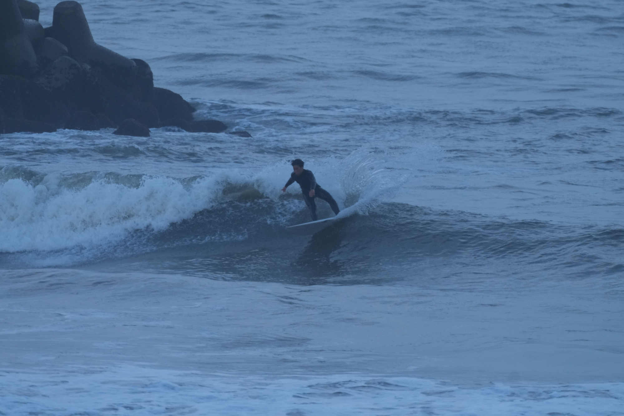 夕方、Ryuはクラスメイトのイツキとホームで波乗り。