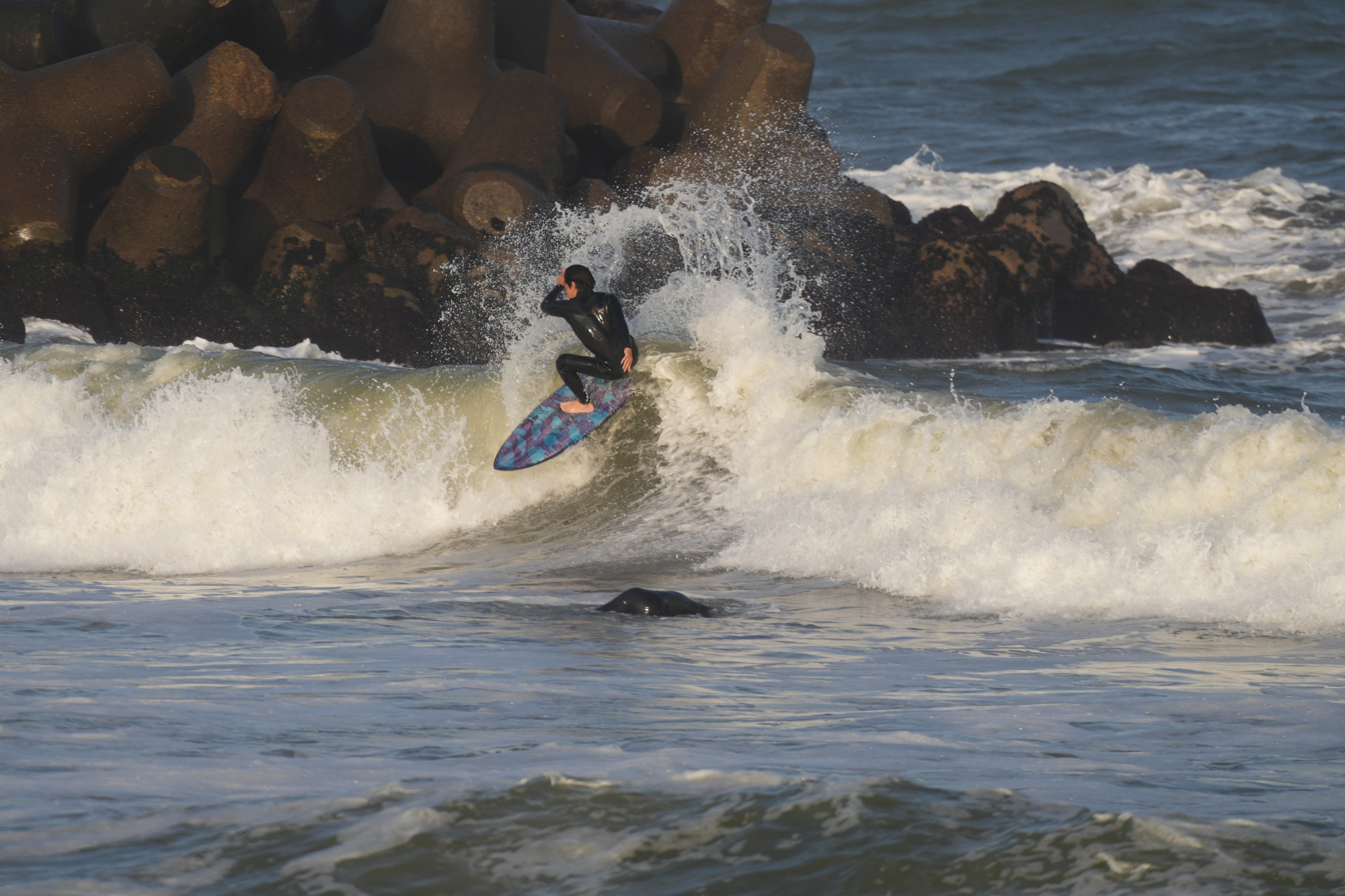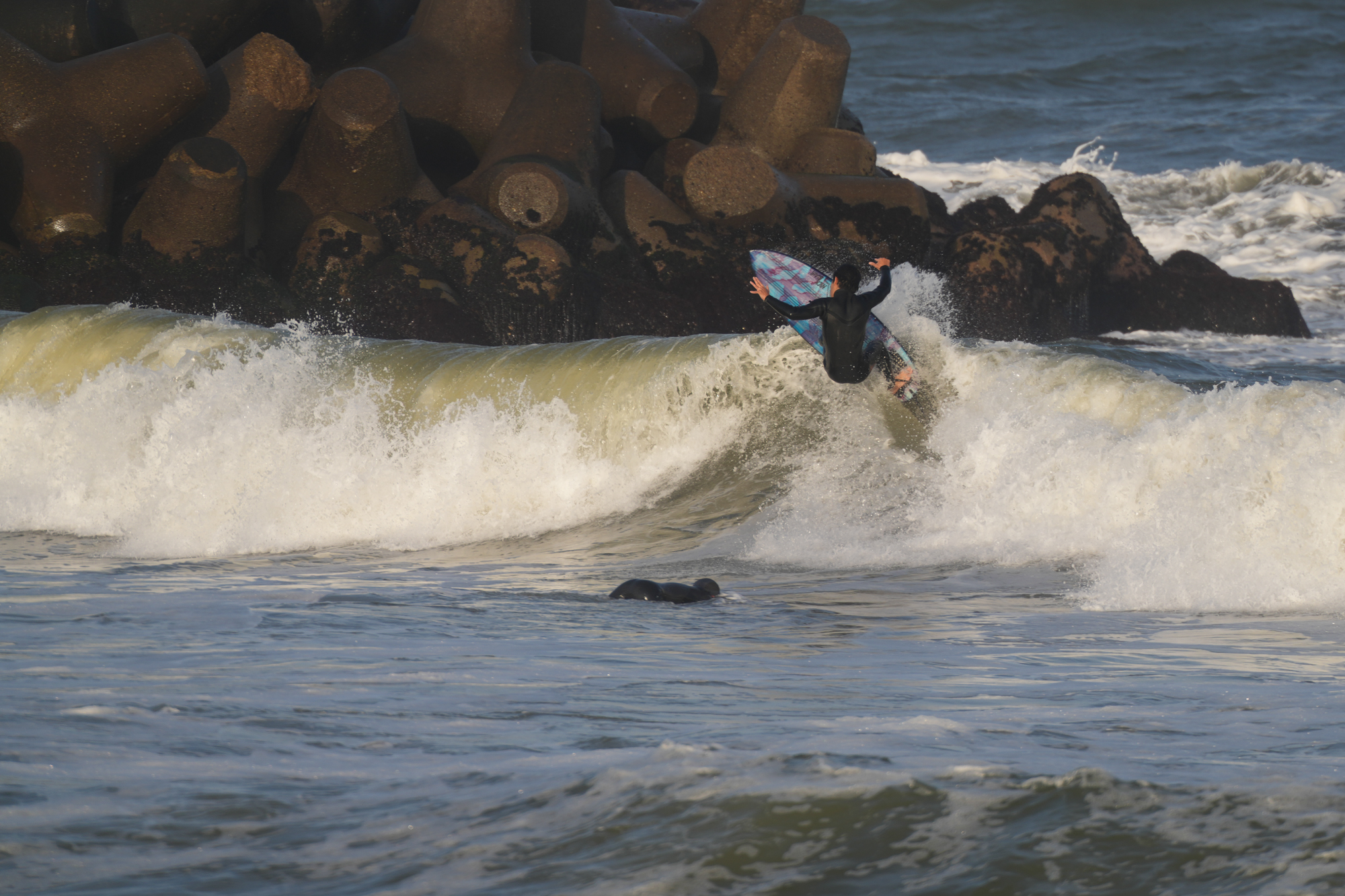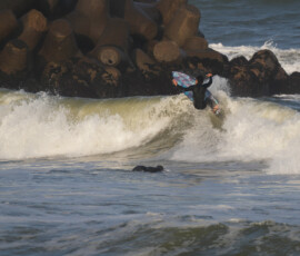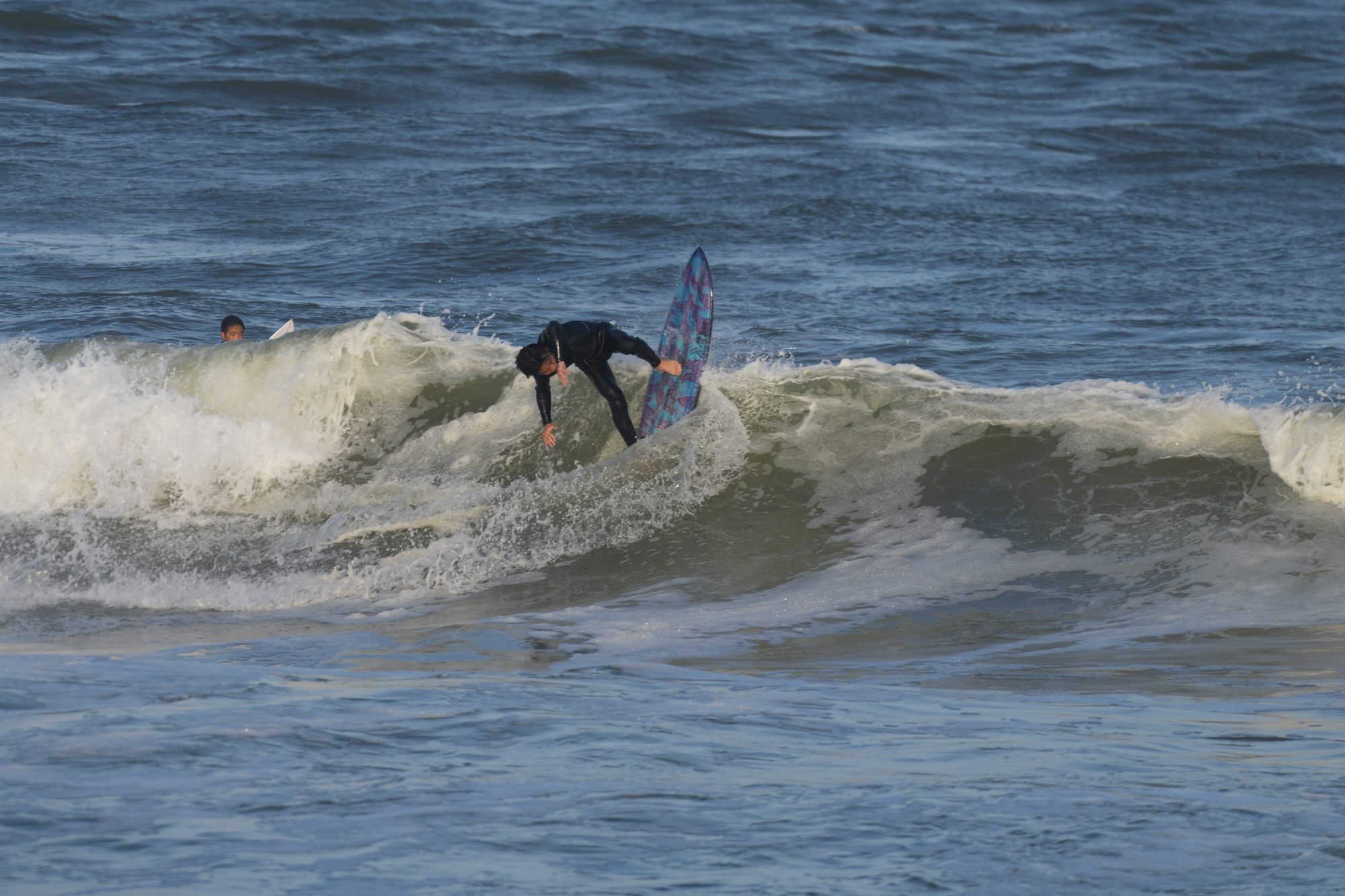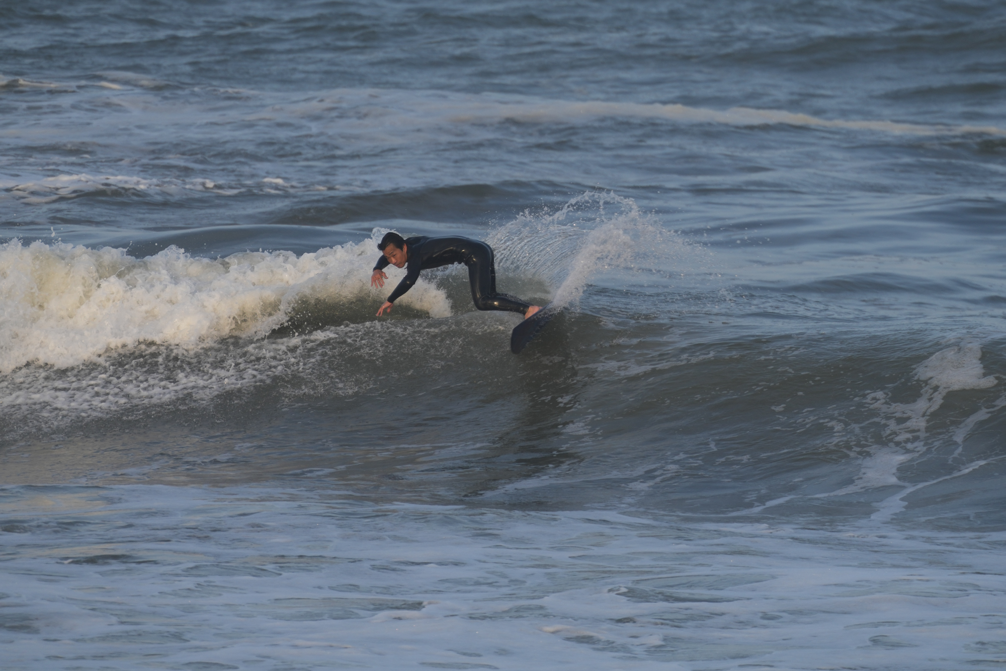 夕方、Ryuはクラスメイトのイツキとホームで波乗り。