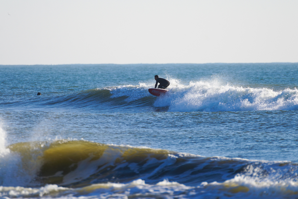 SUPサーフィンで一通り波を乗り尽くしたあとは軽くソフトトップのサーフボードで波をシュレッド。