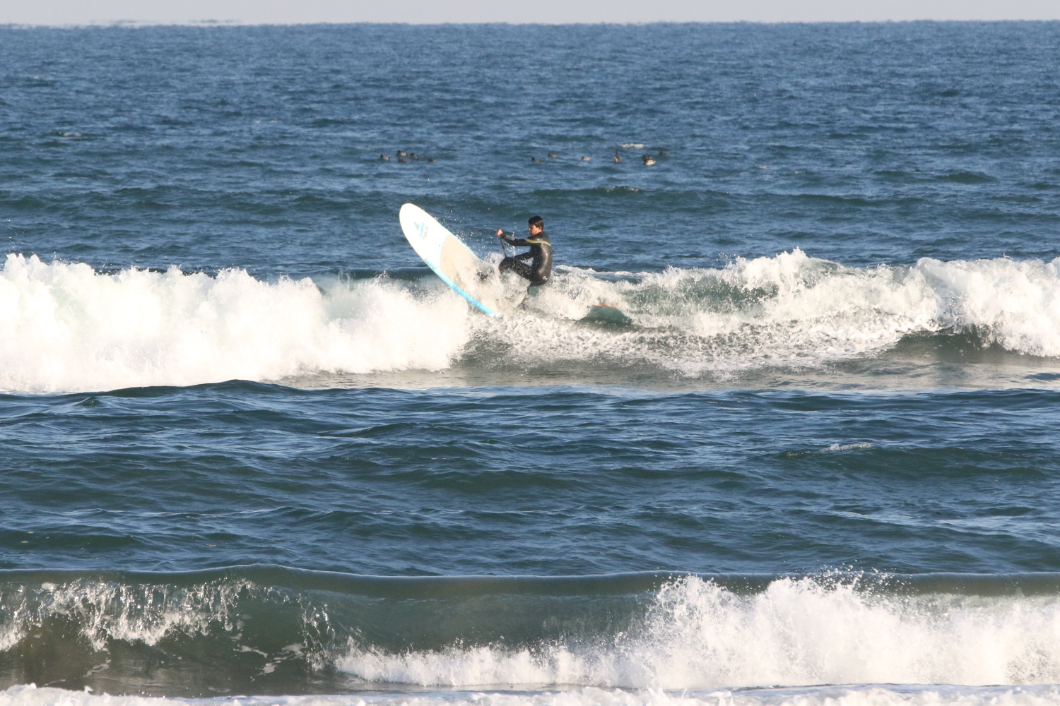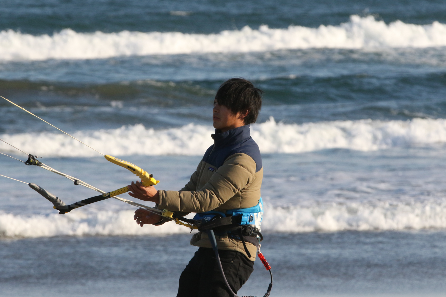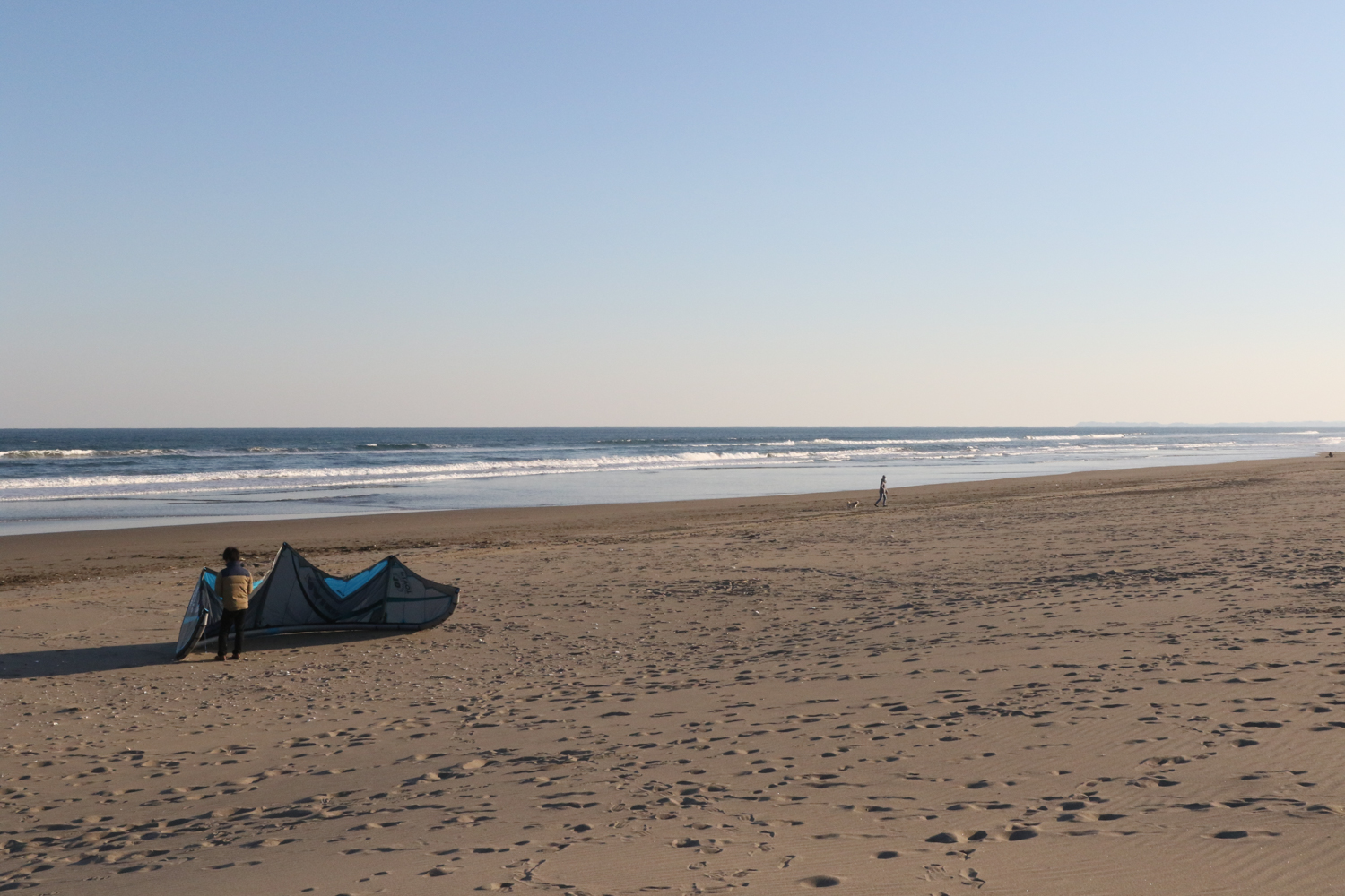 風は弱いオンショア、でも真冬の割には気温も高いのでこの時間からもまるで問題なし。