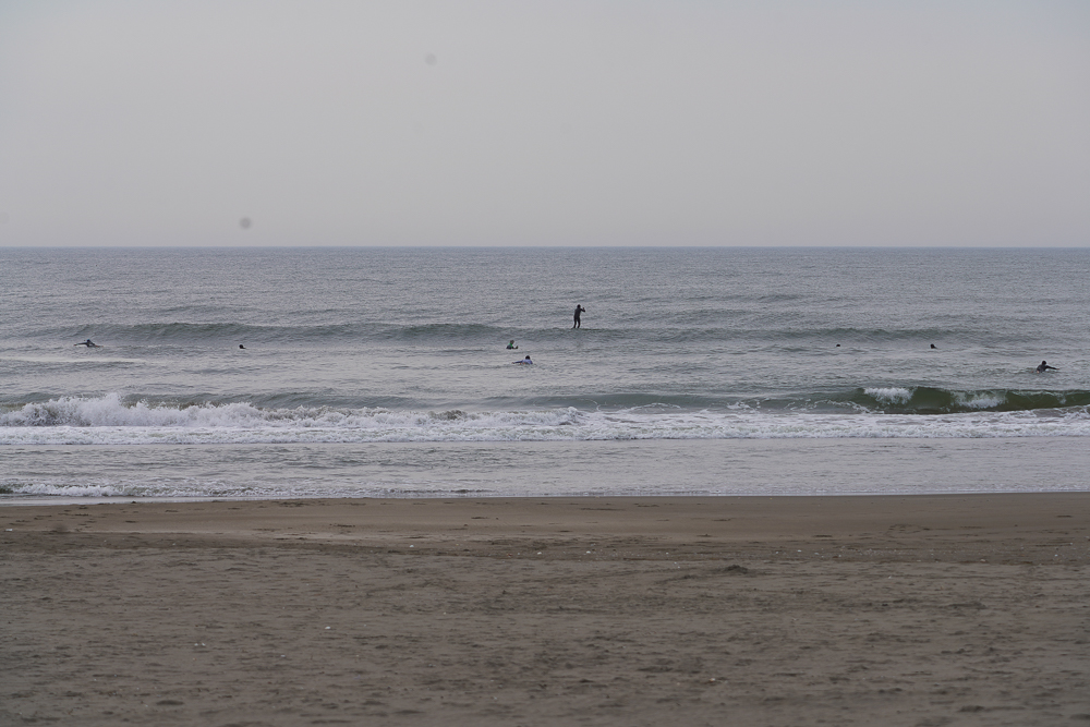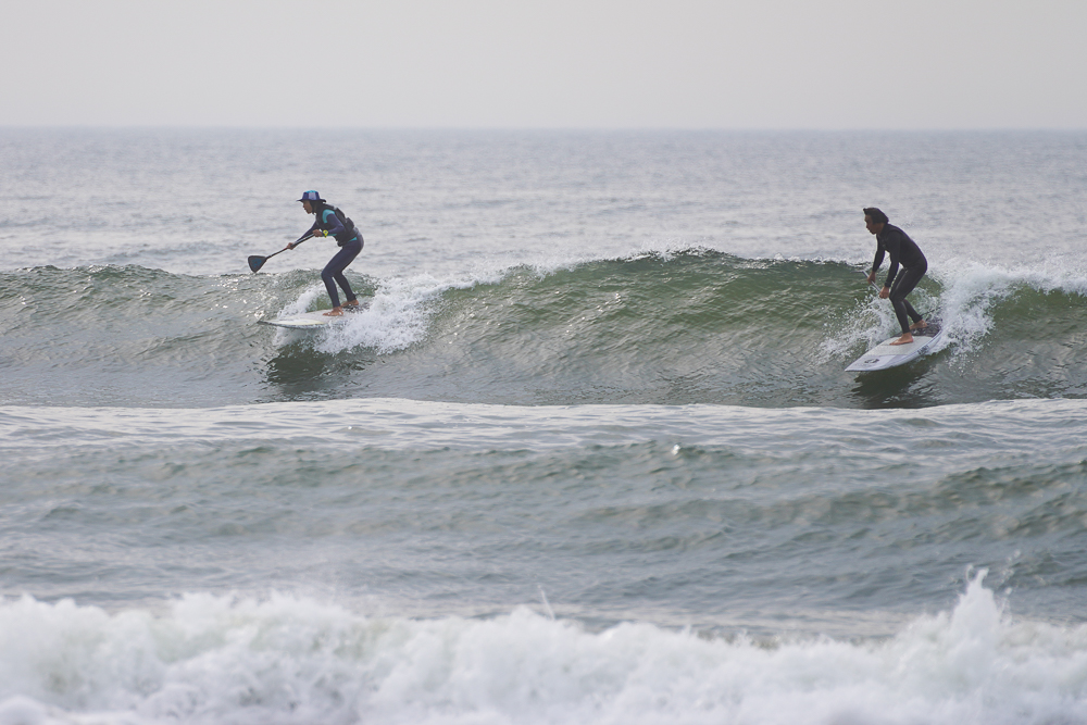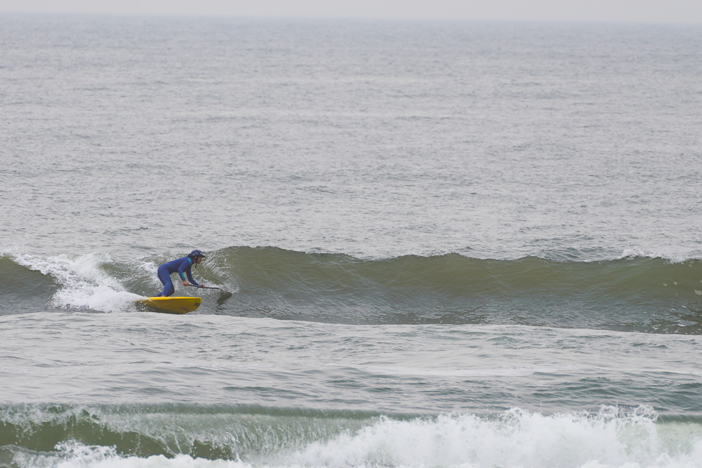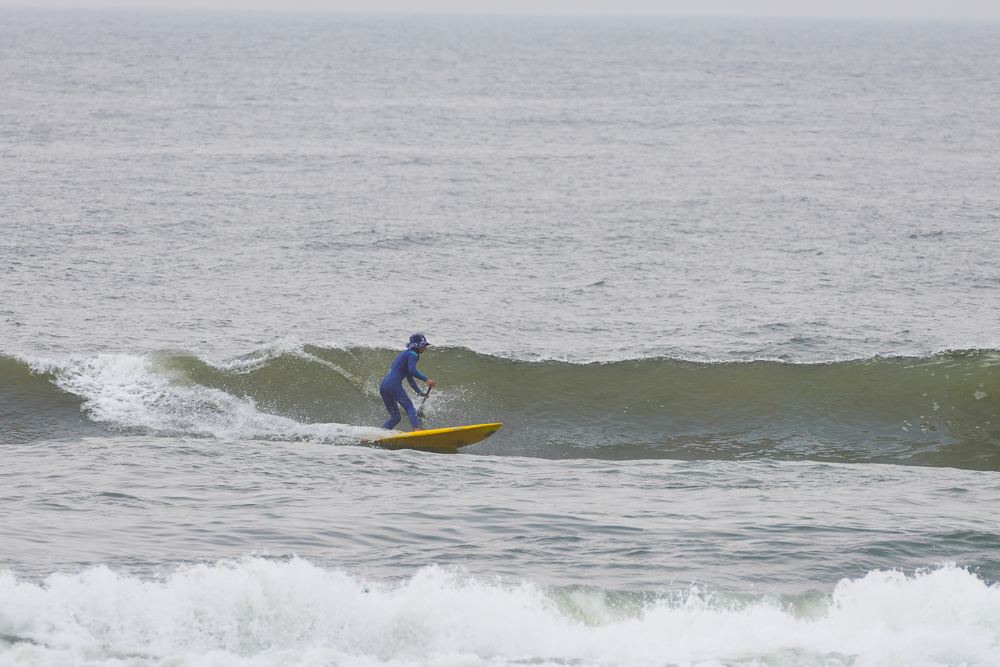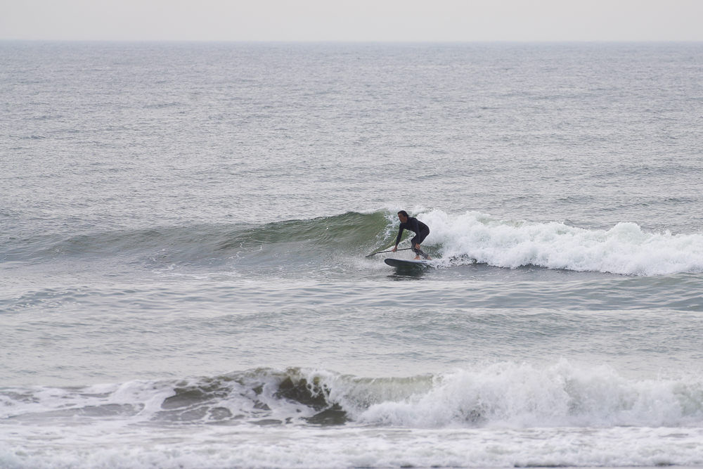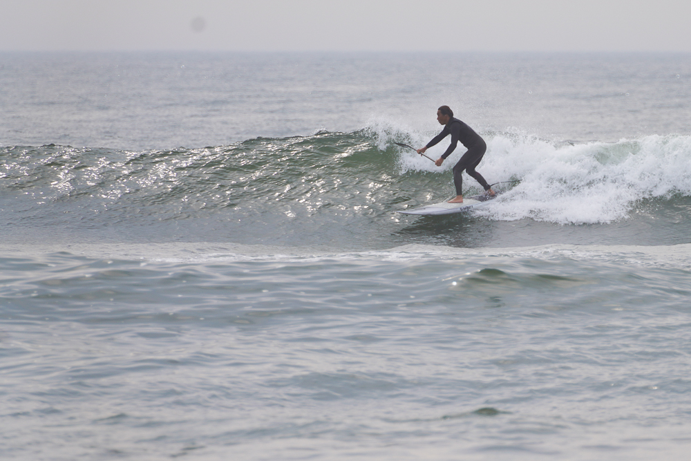 風のないショップ裏でのSUPサーフセッション
