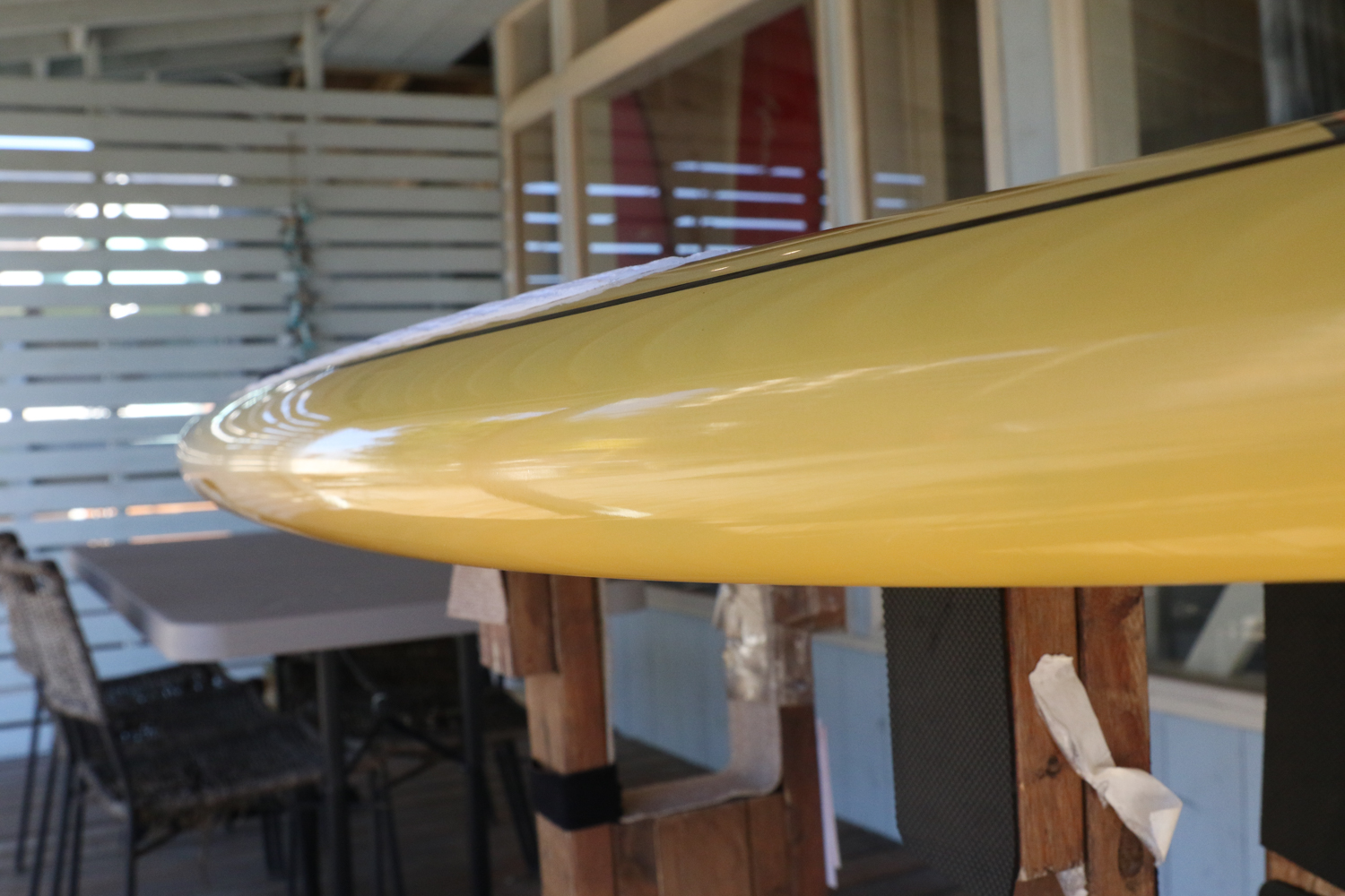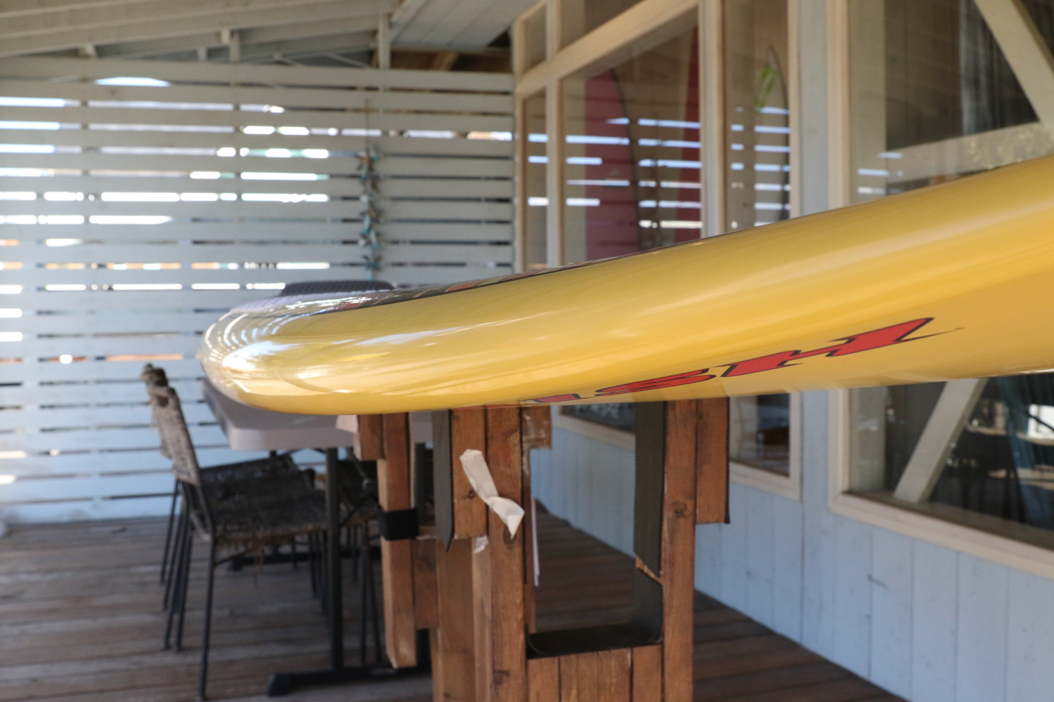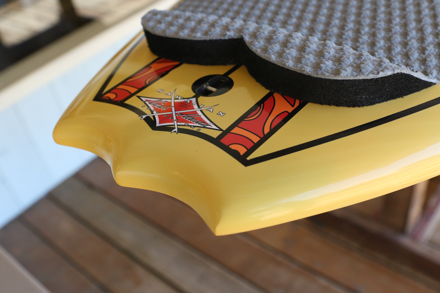 X32よりもアウトラインが細くなっているのでパドルでの直進性が増しているので早めのテイクオフが、ホクアシリーズよりもハイボリュームなデザインが波待ちやゲッティングアウトをレベルに問わず楽におこなうことが可能なボード。