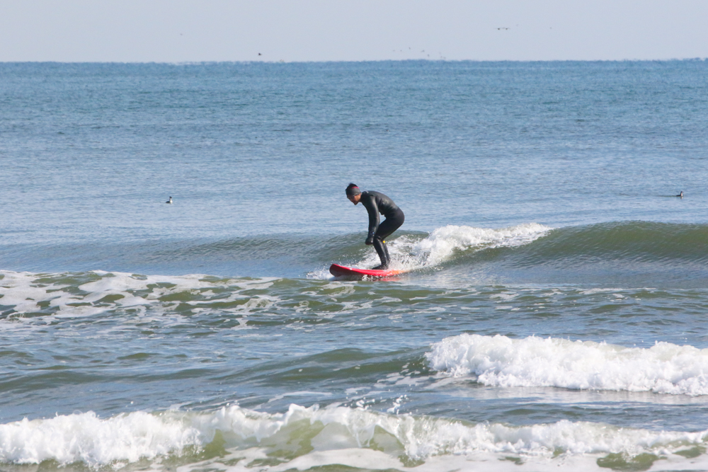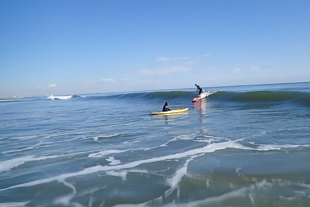 ただただ波に乗るのではなくゲッティングアウトの時の波の見方など一歩深く入ったレッスンを今日は行いました。