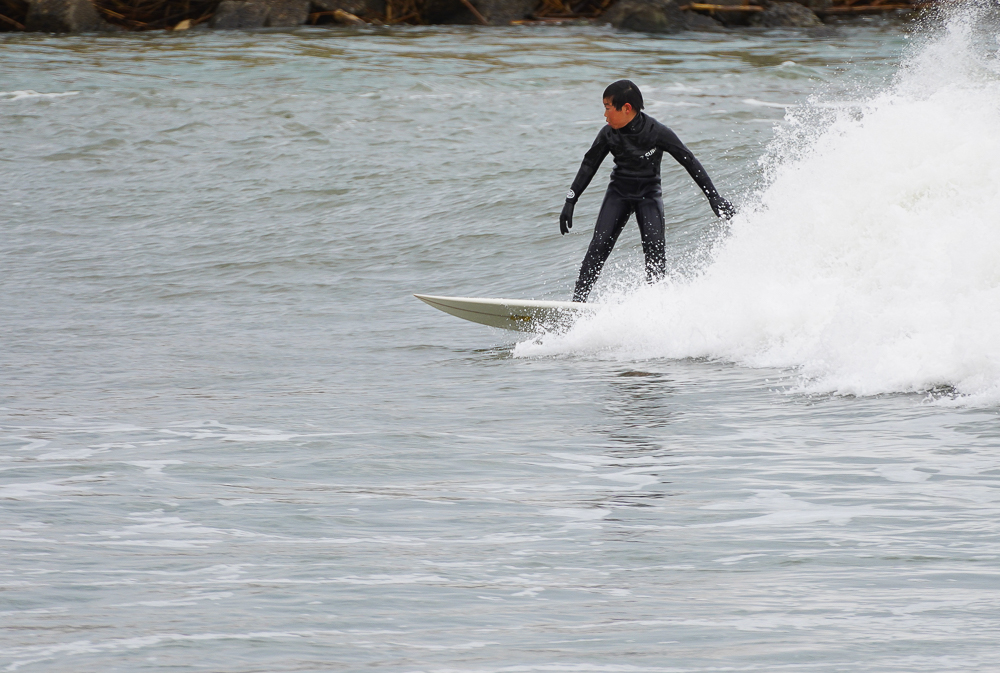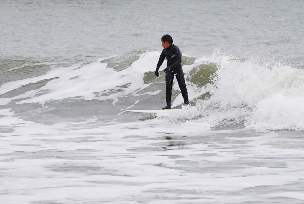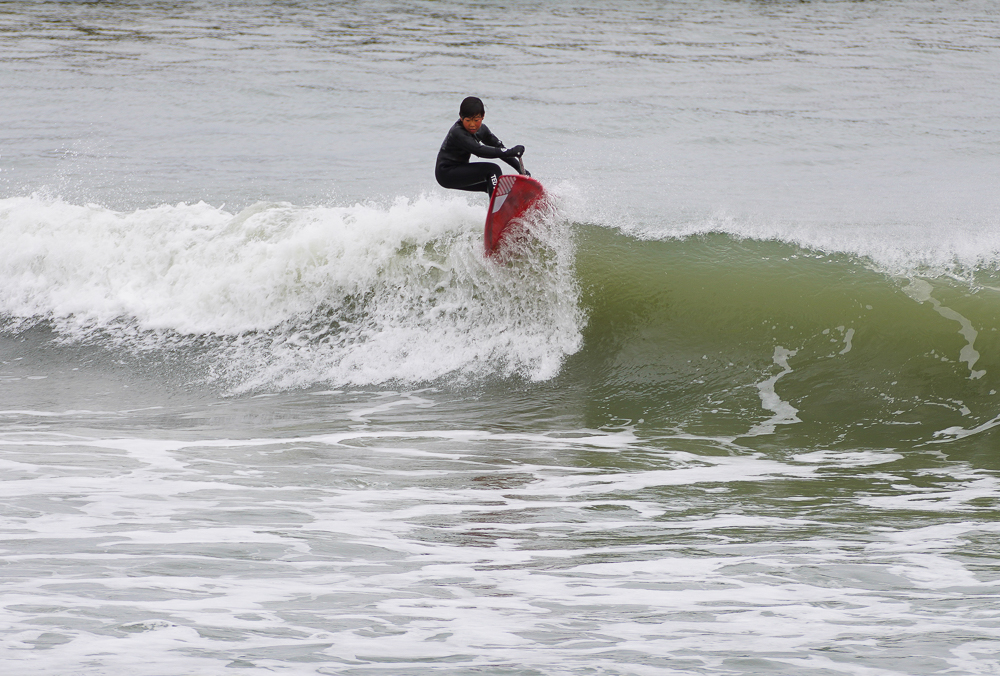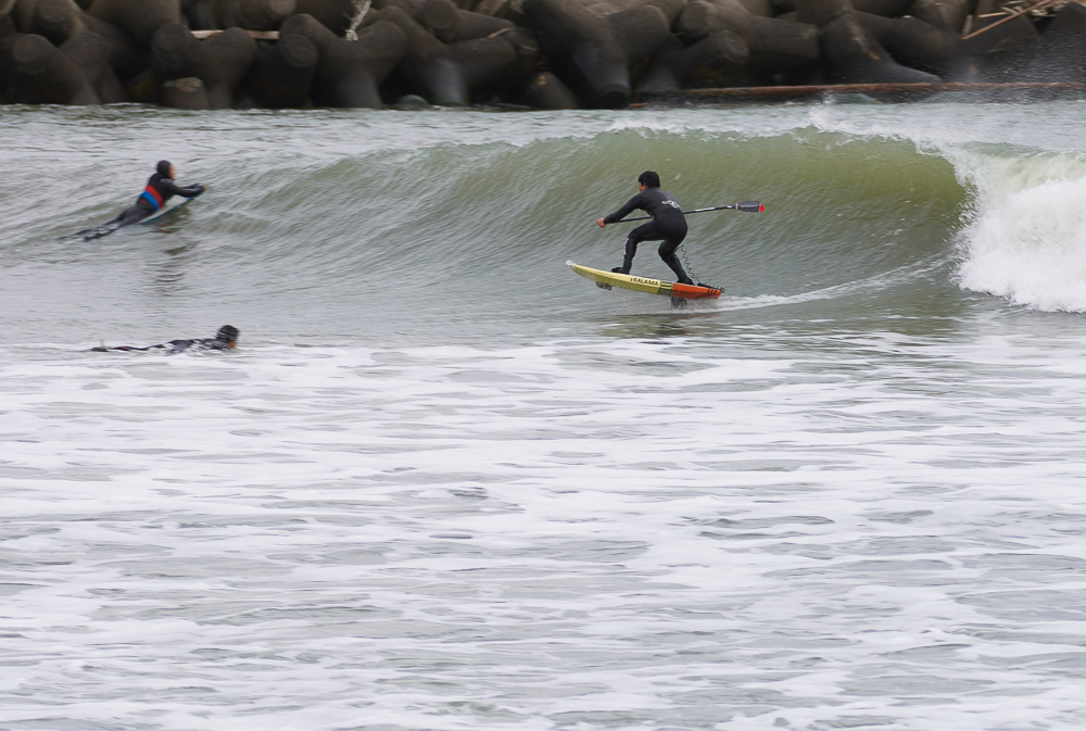 アウトはセットがくるとどカーンという感じで乗れる波が少なめ、インサイドで乗れる波をしっかりメイクしていたのはKimizukaさん。