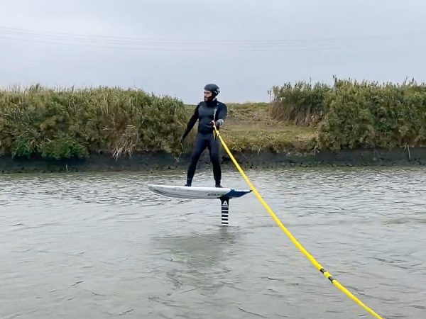 フォイルには厳しいコンディション、そんな中でもフォイル波をピックアップしてロングライドするShunsukekun。