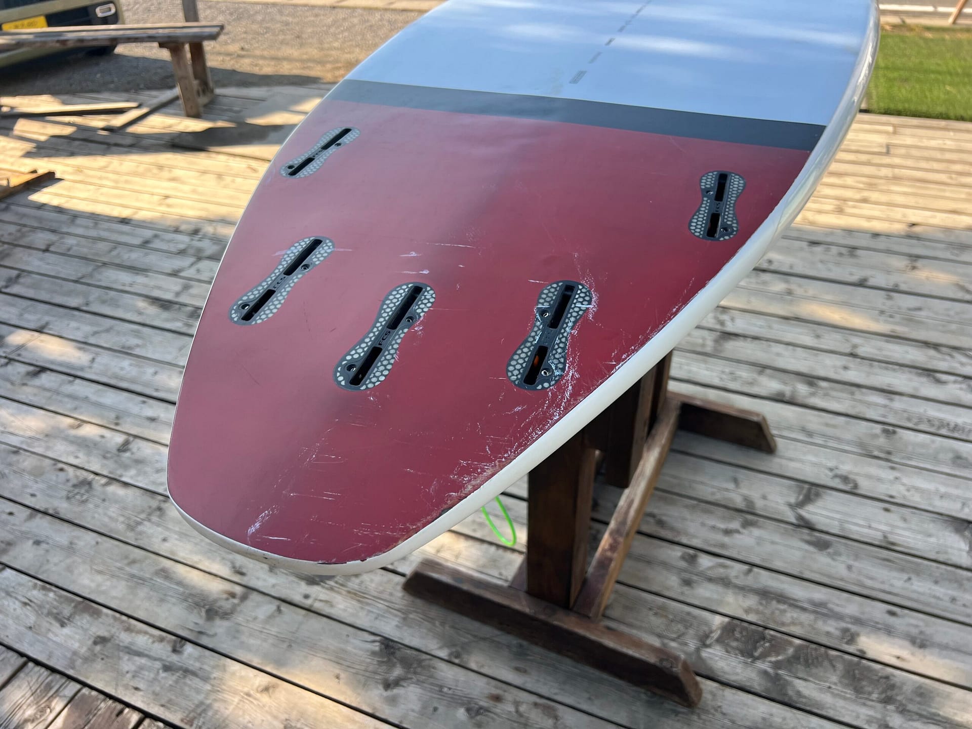 全体的に傷など多めのボードですがこれからこのボードで新しいライディングをしていく過程でダメージを気にしないでチャレンジしていけるかと思います。